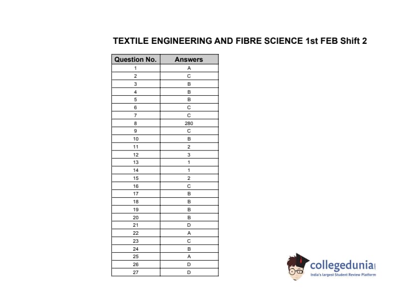 | GATE 2015 Textile Engineering and Fibre Science (TF) Question Paper | GATE 2015 Textile Engineering and Fibre Science (TF) Answer Key |