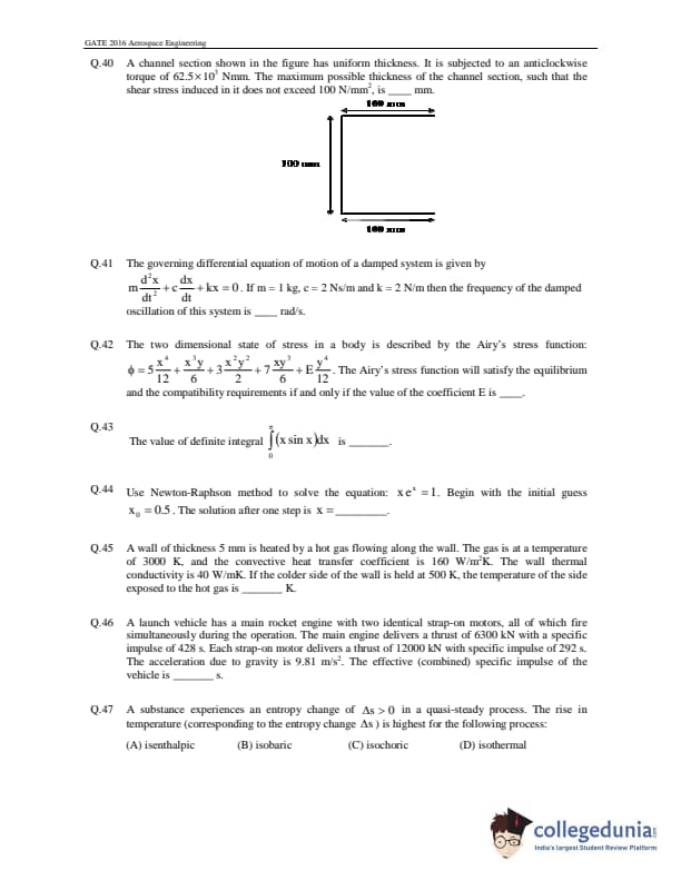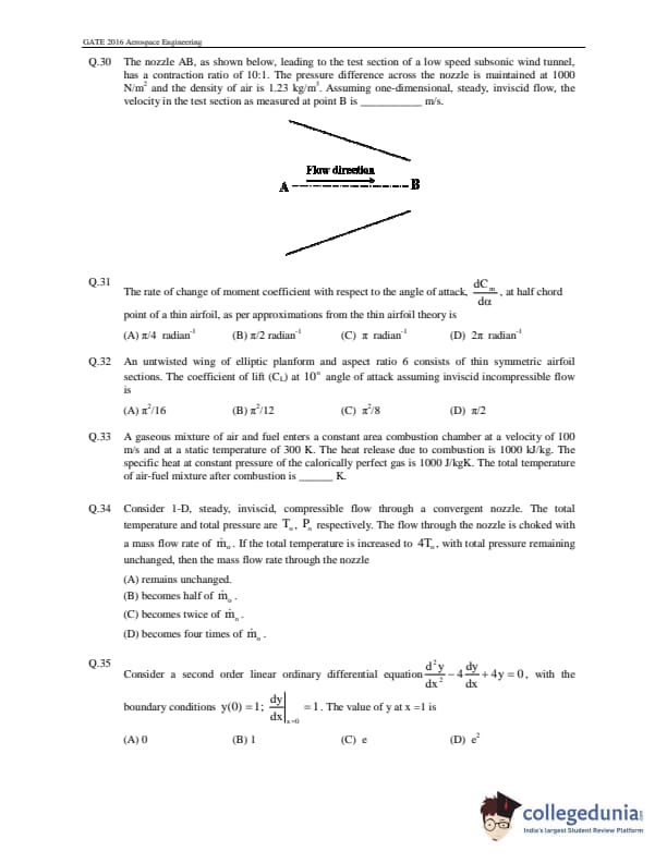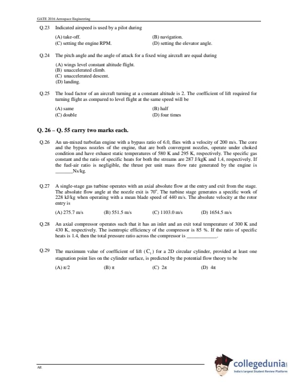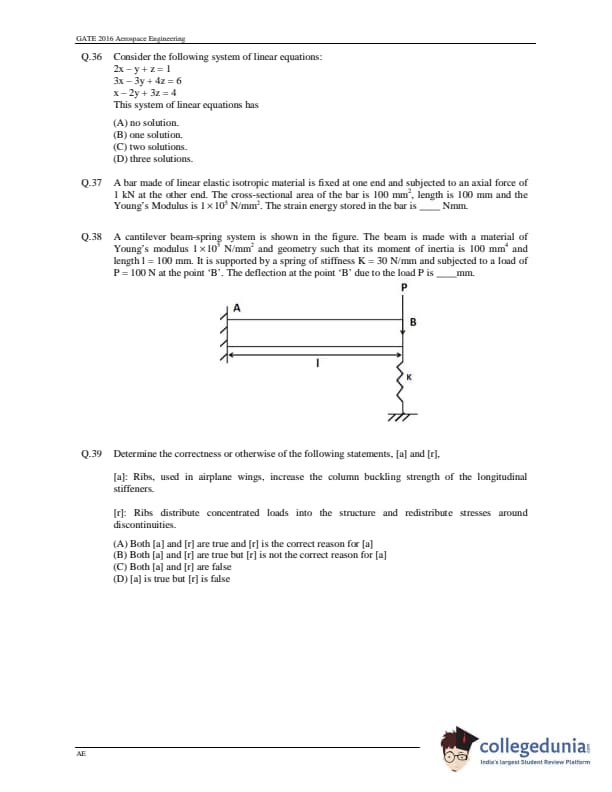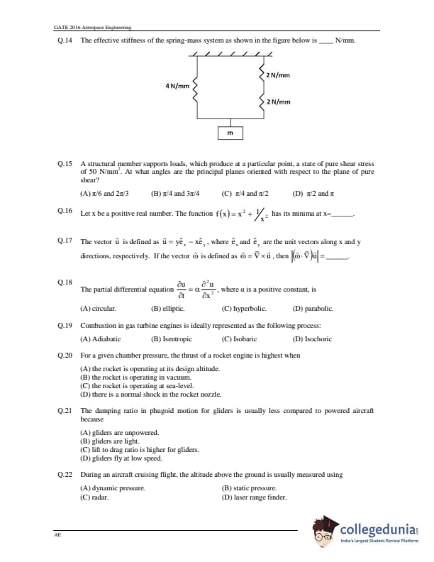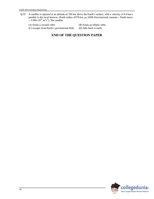 GATE 2016 Aerospace Engineering (AE) Question Paper with Answer Key PDFs (February 7- Afternoon Session)