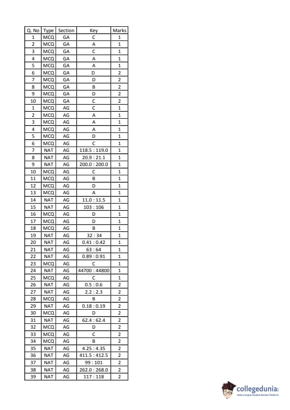 GATE 2016 AG Answer Key Details