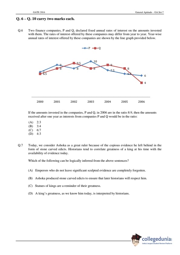 - There was two-third negative marking for each wrong answer in two marks MCQs.