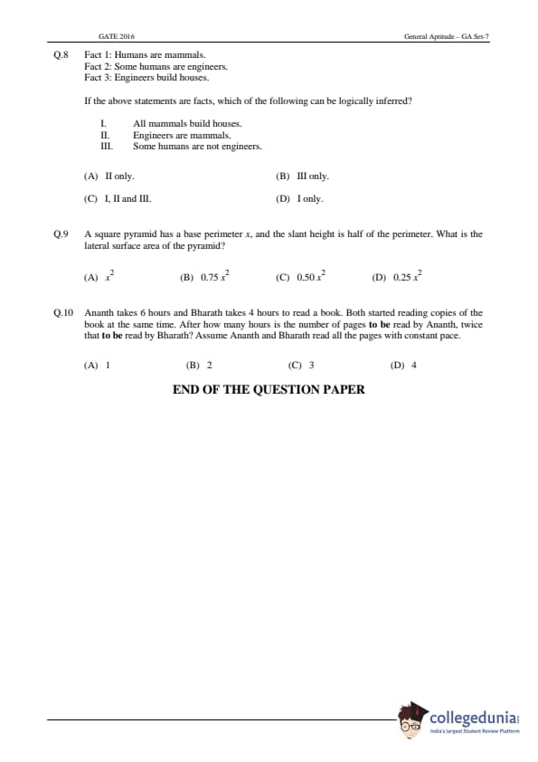 GATE 2016 Agricultural Engineering (AG) Question Papers with Answer Key PDFs (February 7-Forenoon Session)