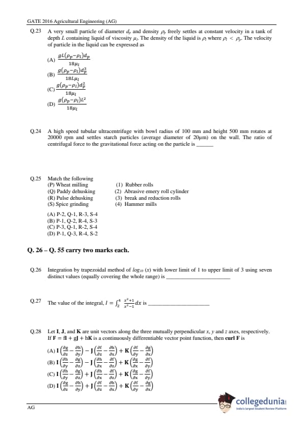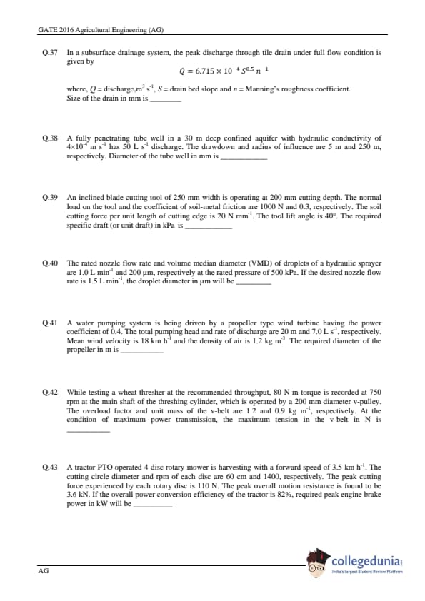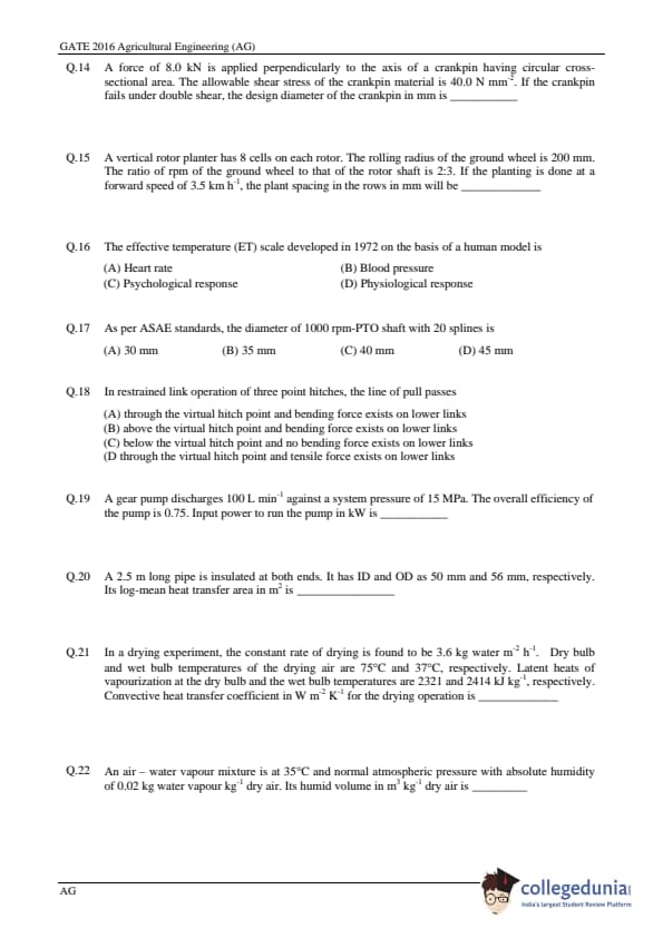 | GATE 2016 Agriculture Engineering (AG) Question Paper | GATE 2016 Agriculture Engineering (AG) Answer Key |