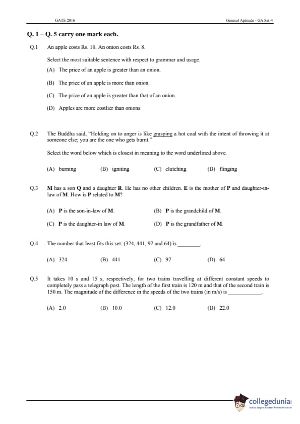 - There was two-third negative marking for each wrong answer in two marks MCQs.