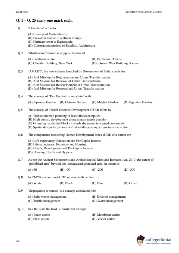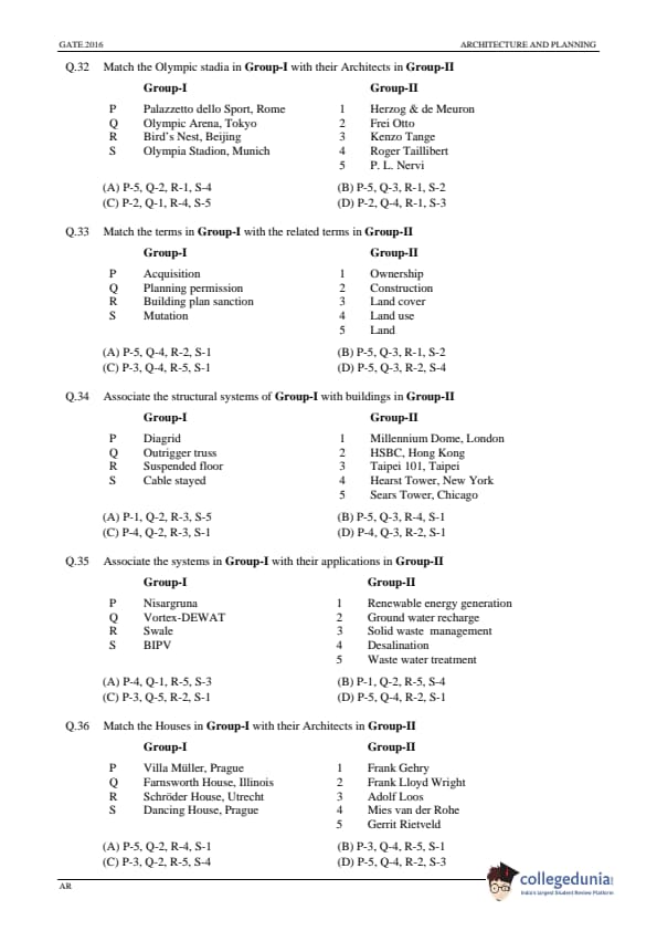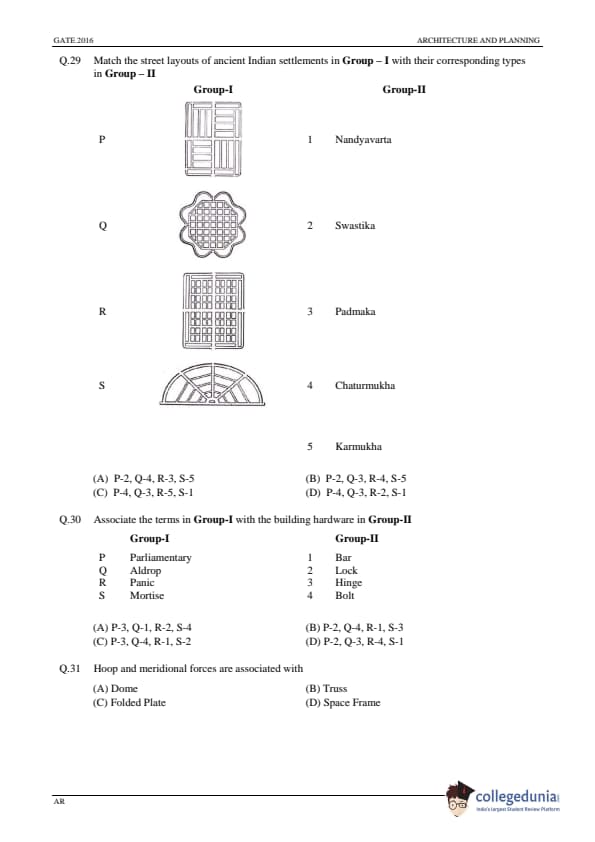| GATE 2016 Architecture and Planning (AR) Question Paper | GATE 2016 Architecture and Planning (AR) Answer Key |