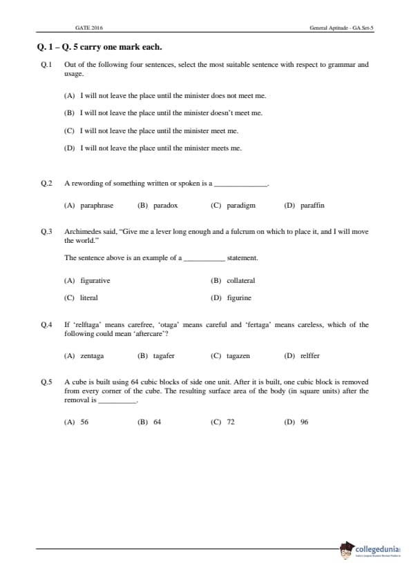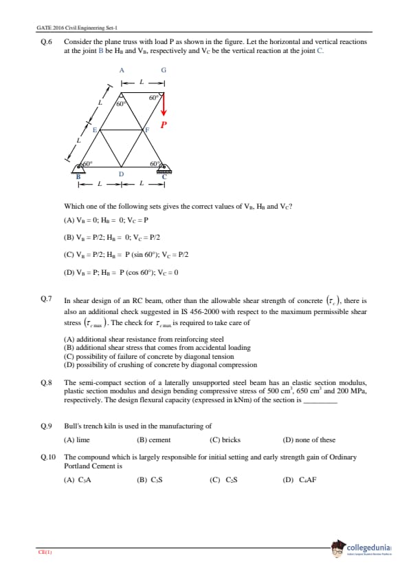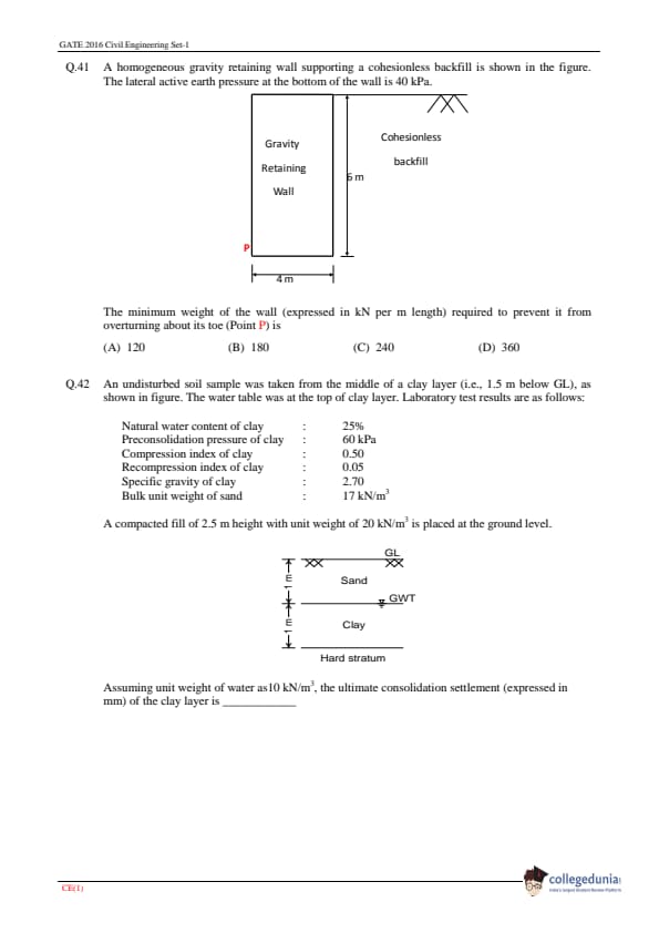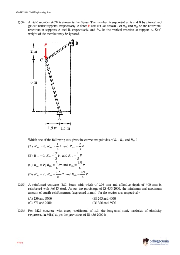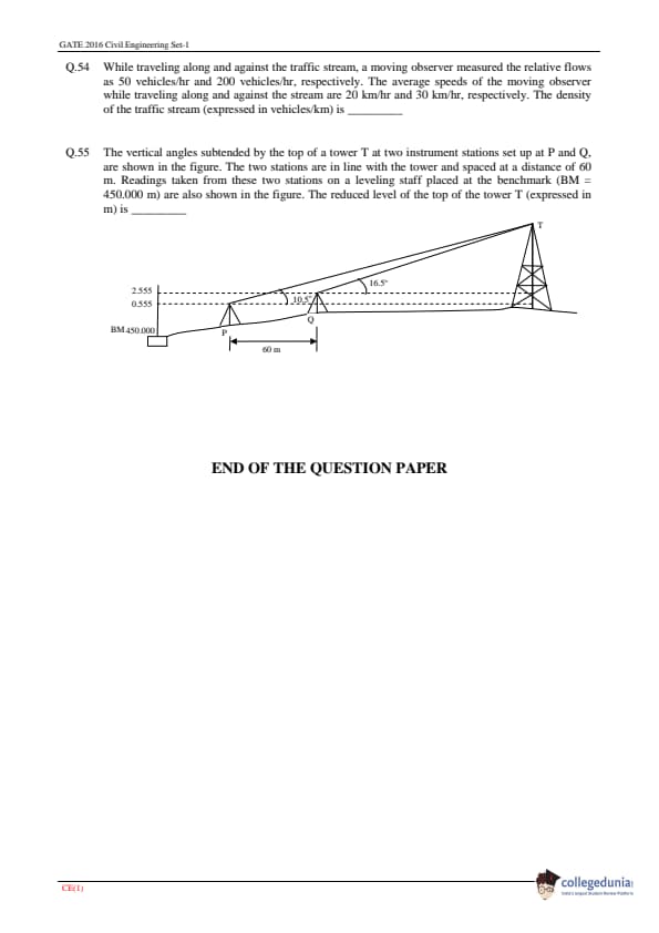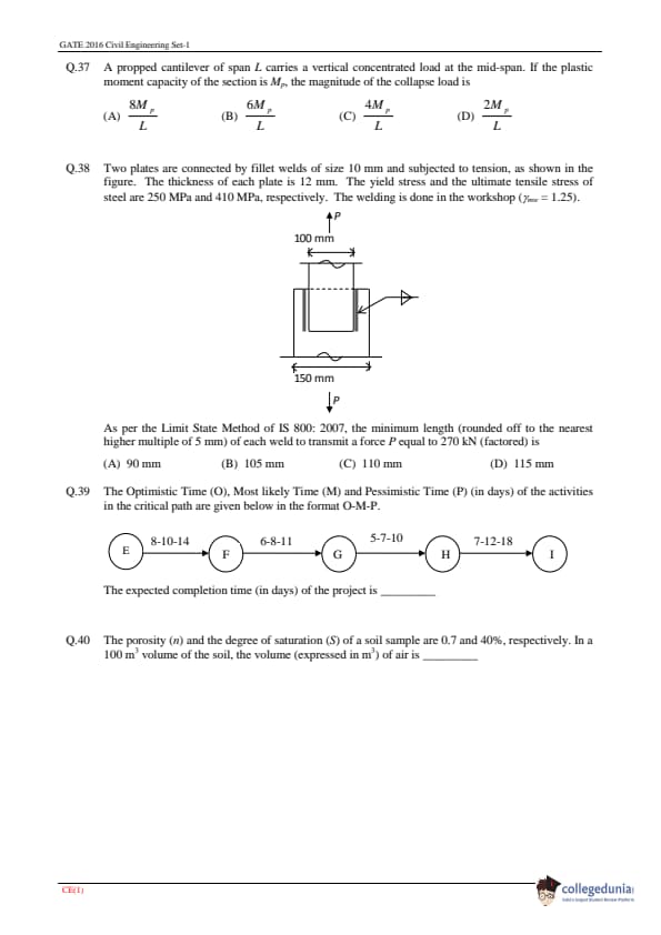 | GATE 2016 CE Question Paper | GATE 2016 CE Answer Key |