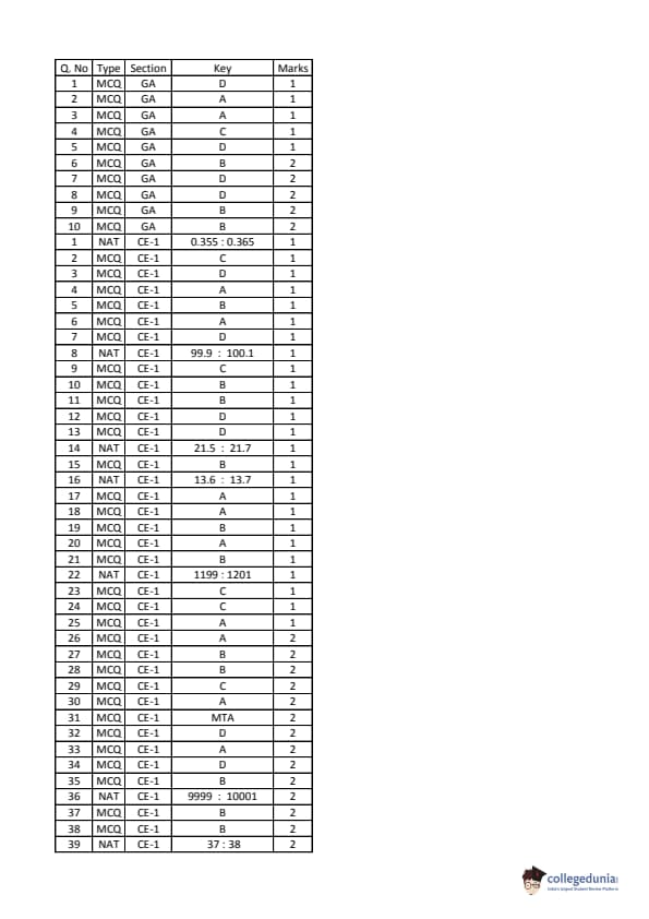 GATE 2016 CE Answer Key Details