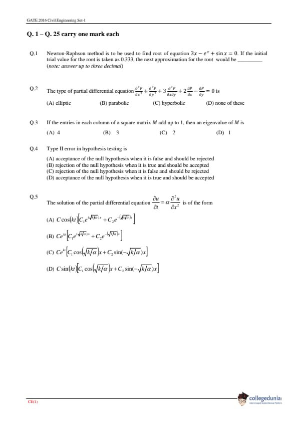 GATE 2016 Civil Engineering (CE)- Slot 1 Question Papers Analysis
