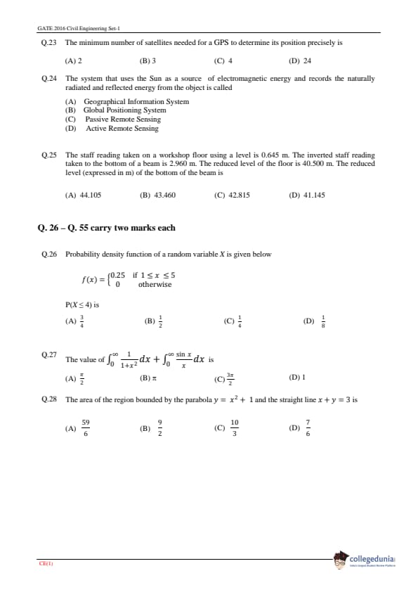 GATE 2016 Civil Engineering (CE) Question Papers with Answer Key PDFs (February 6 - Forenoon Session)