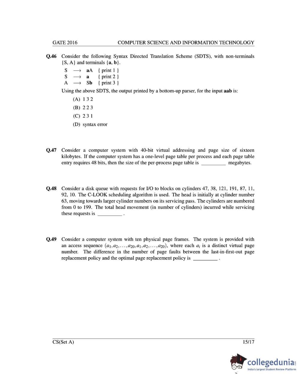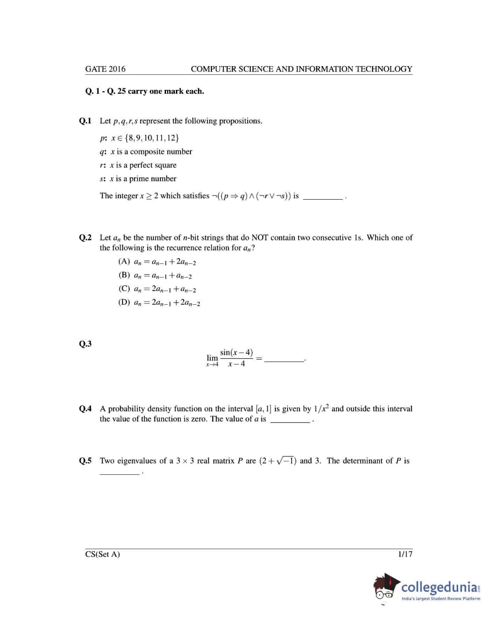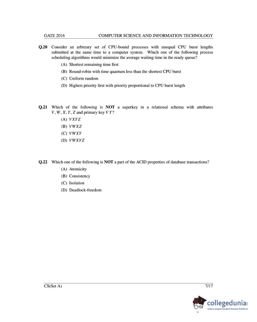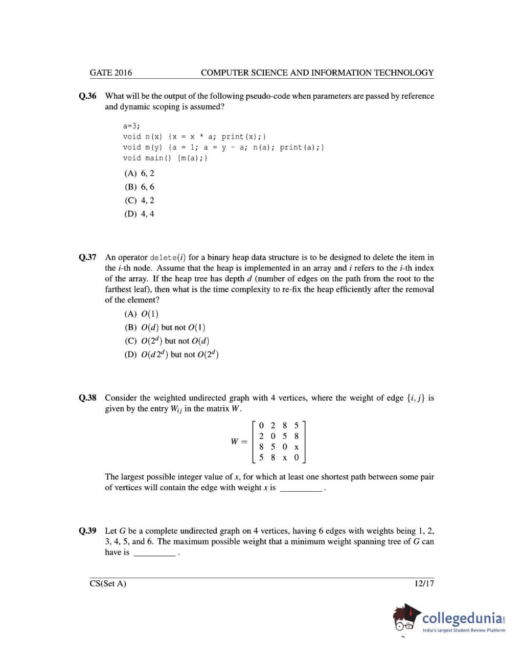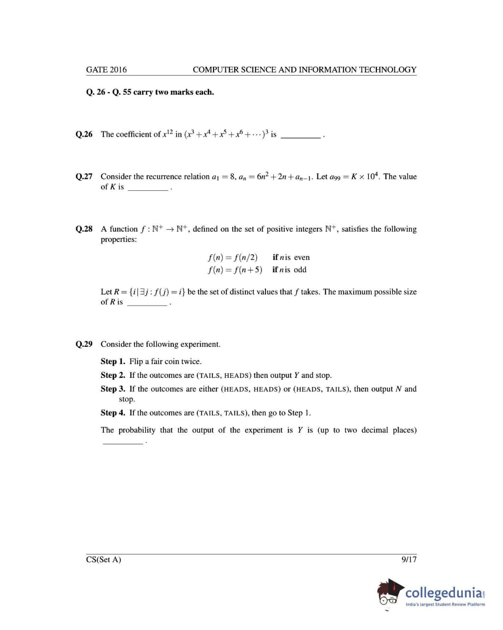 | GATE 2016 Computer Science (CS) Question Paper | GATE 2016 Computer Science (CS) Answer Key |