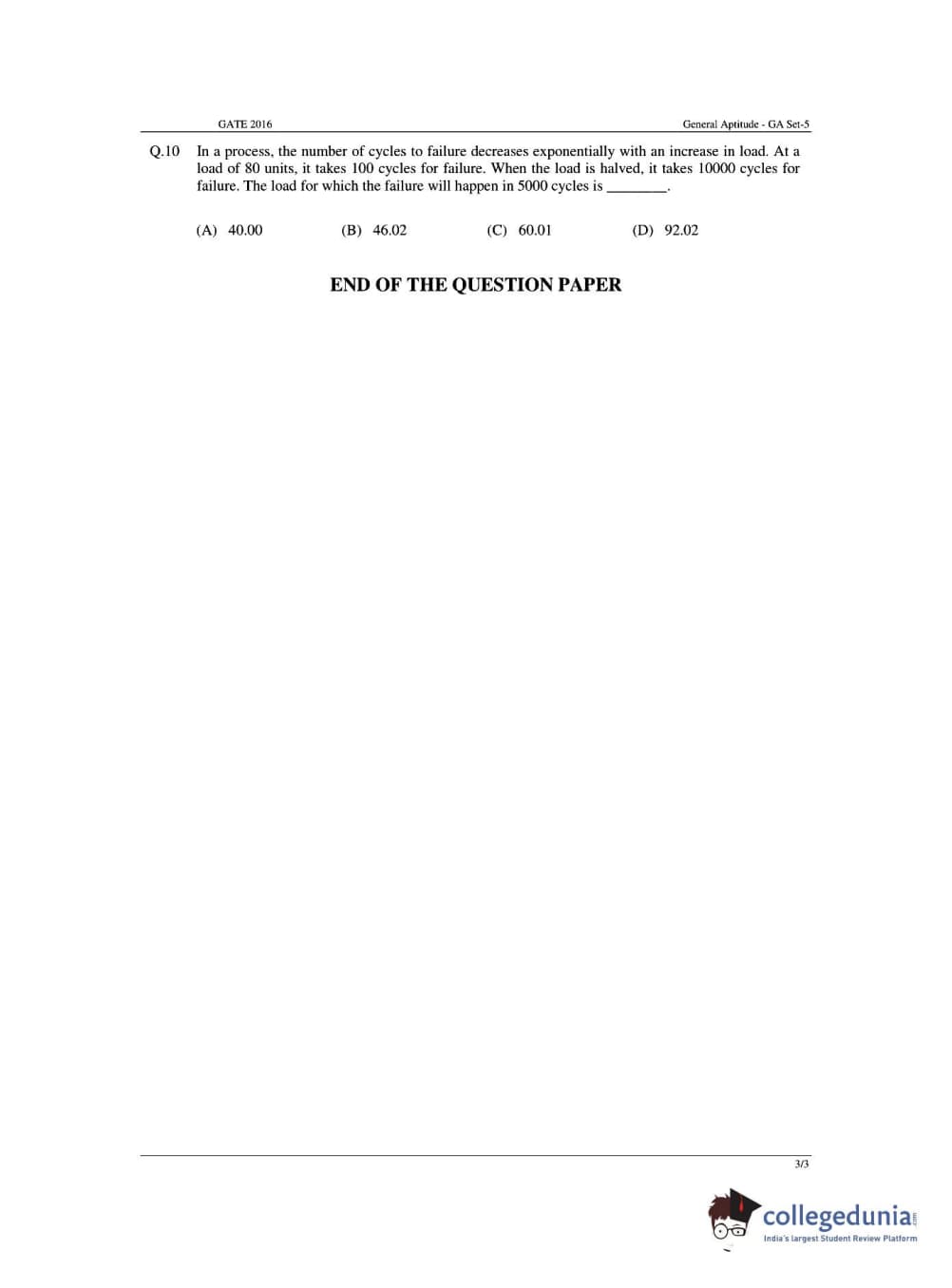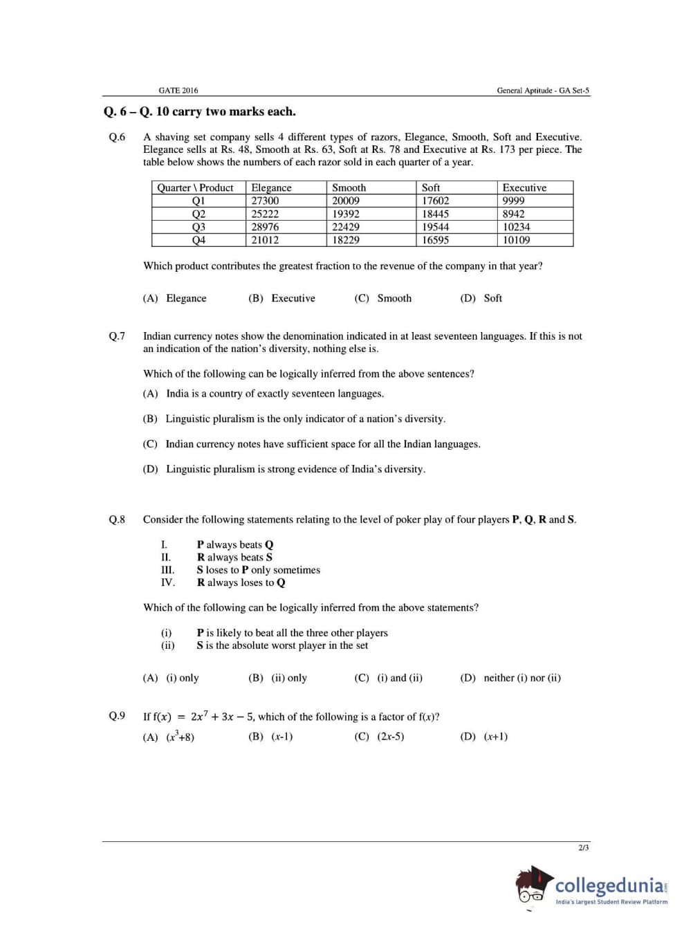 - The question paper consisted of 65 questions for overall 100 marks. 10 of the 65 Questions were related to General Aptitude.