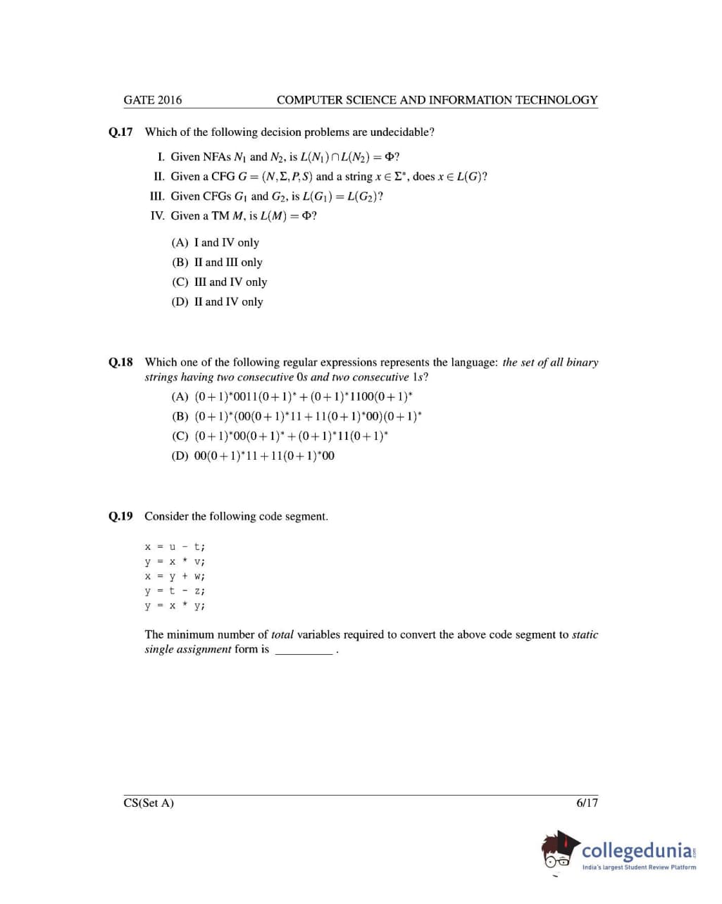 GATE 2016 CS Question Paper with Answer Key PDFs- Slot 1 (February 6- Forenoon Session)