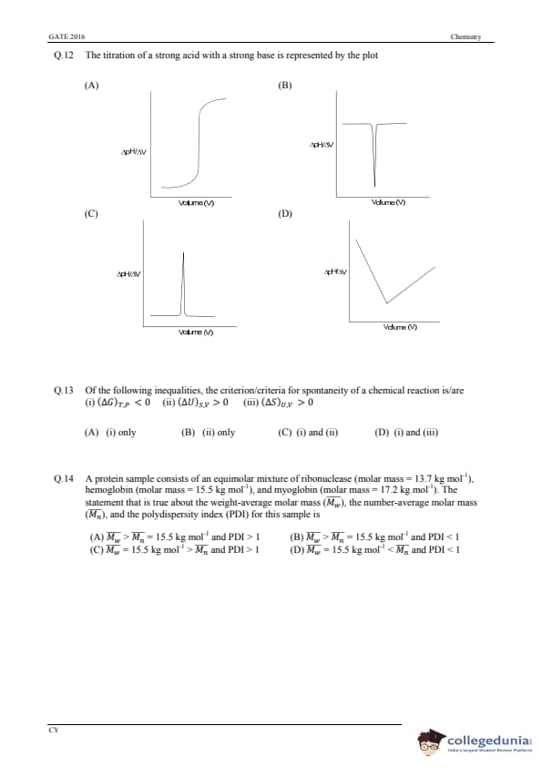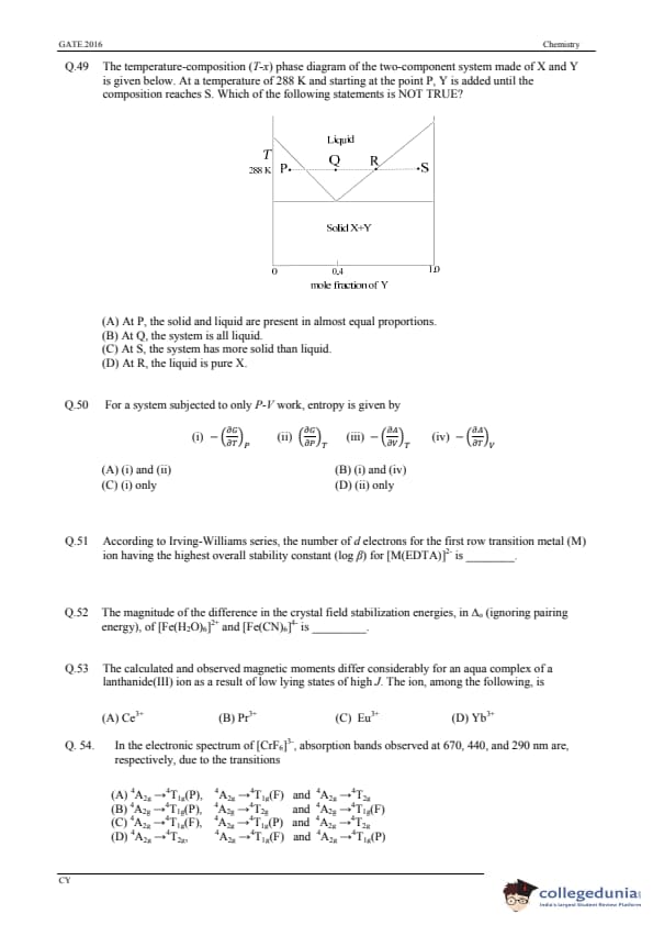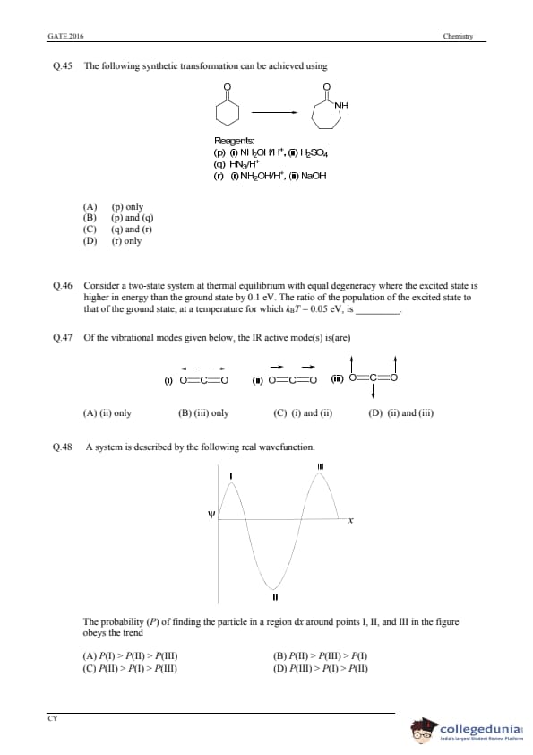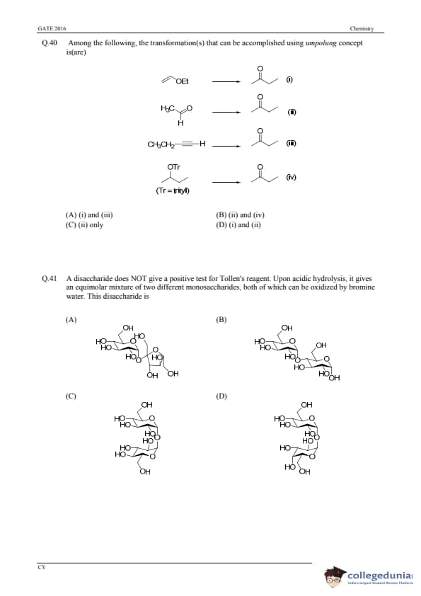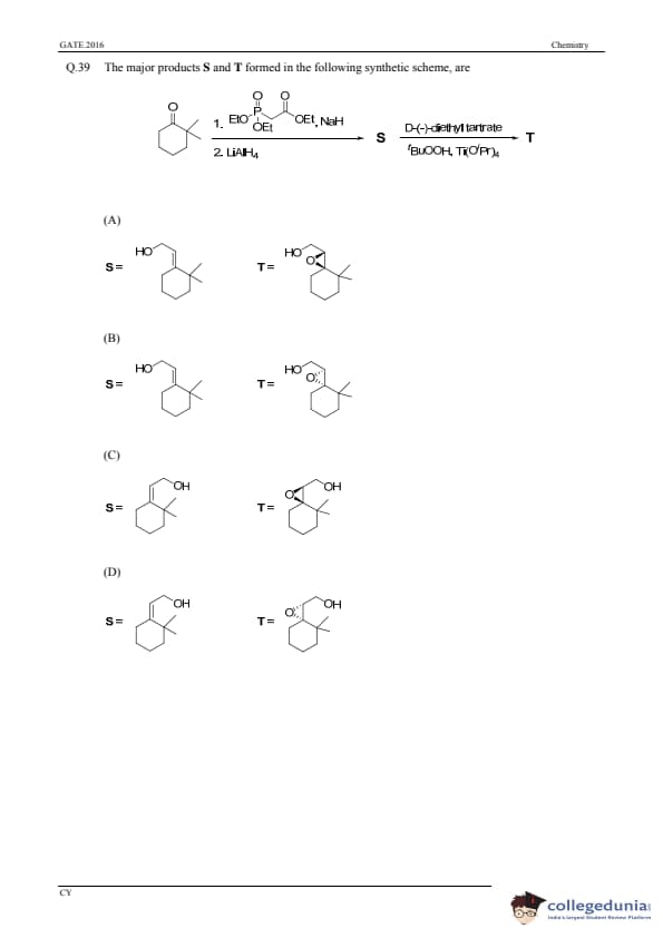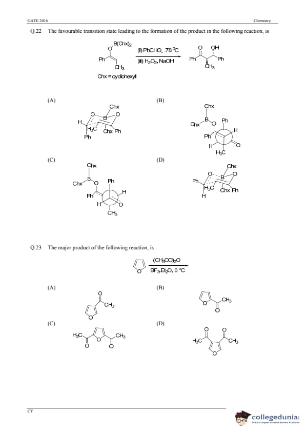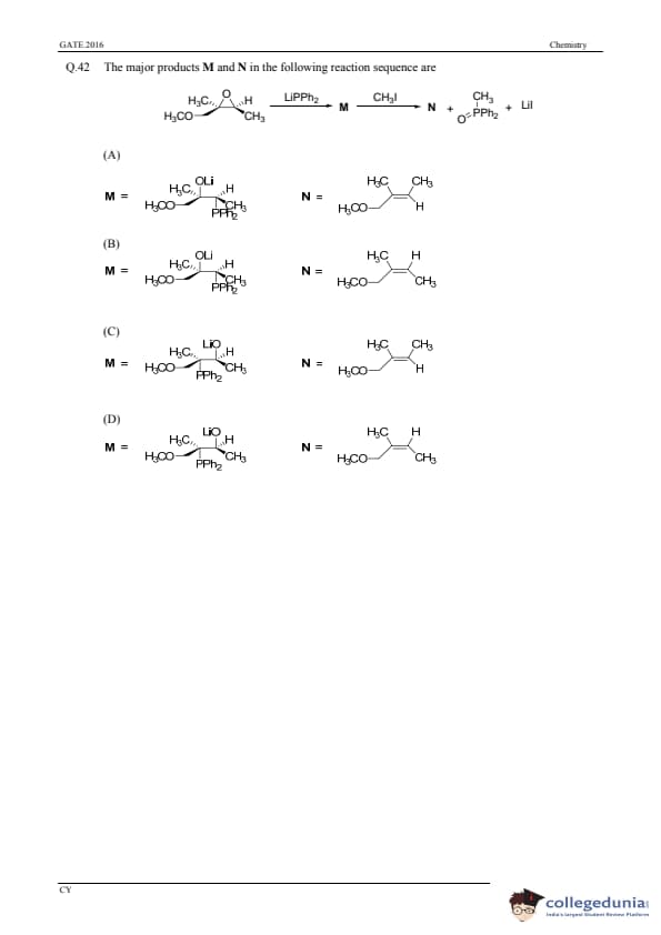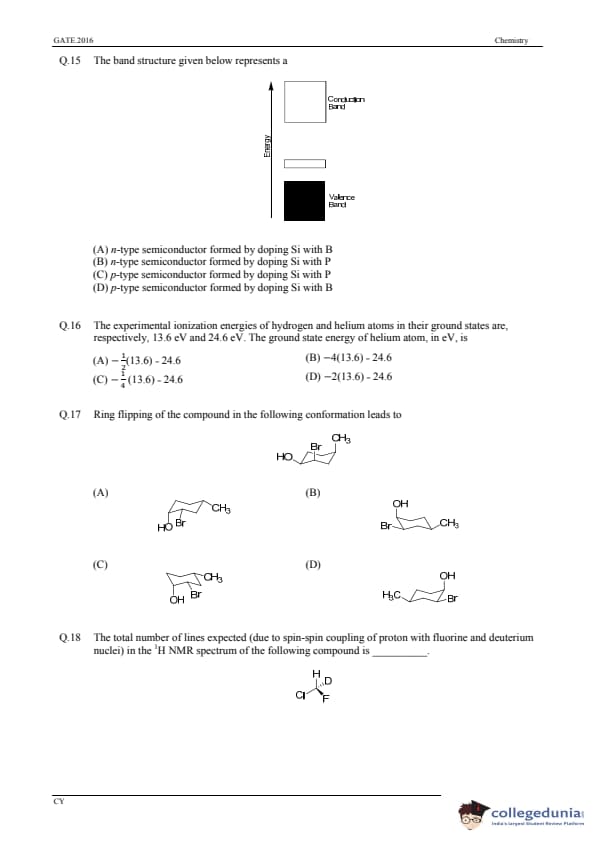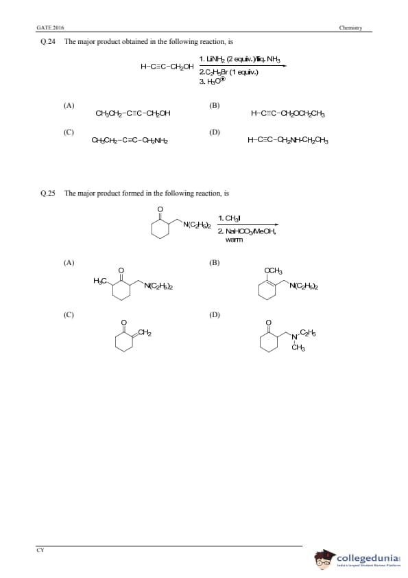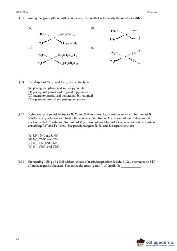 GATE 2016 Chemistry (CY) Question Paper with Answer Key PDFs (January 31-Afternoon Session)