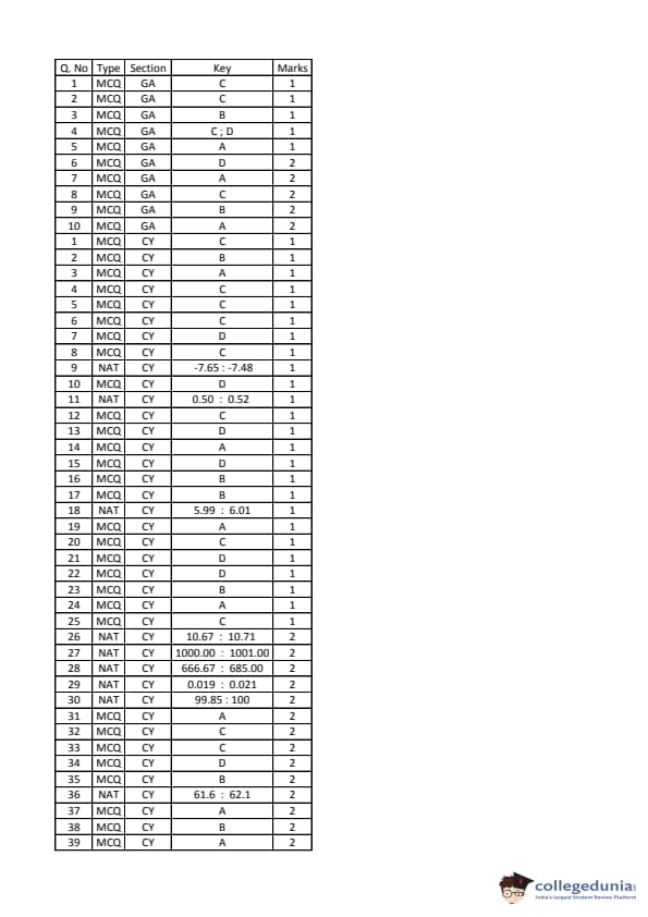 GATE 2016 CY Answer Key Details