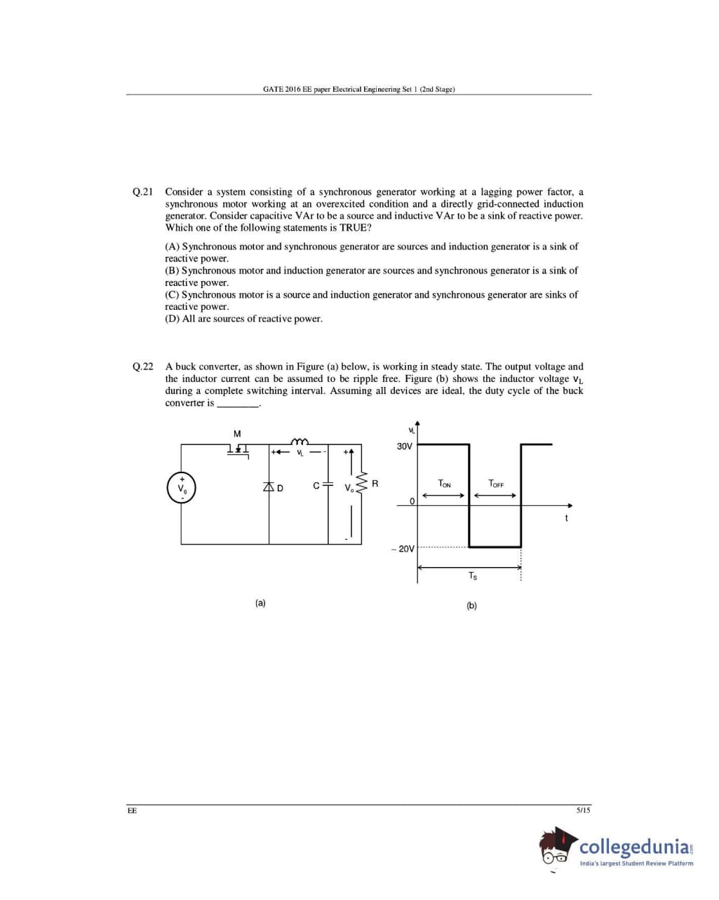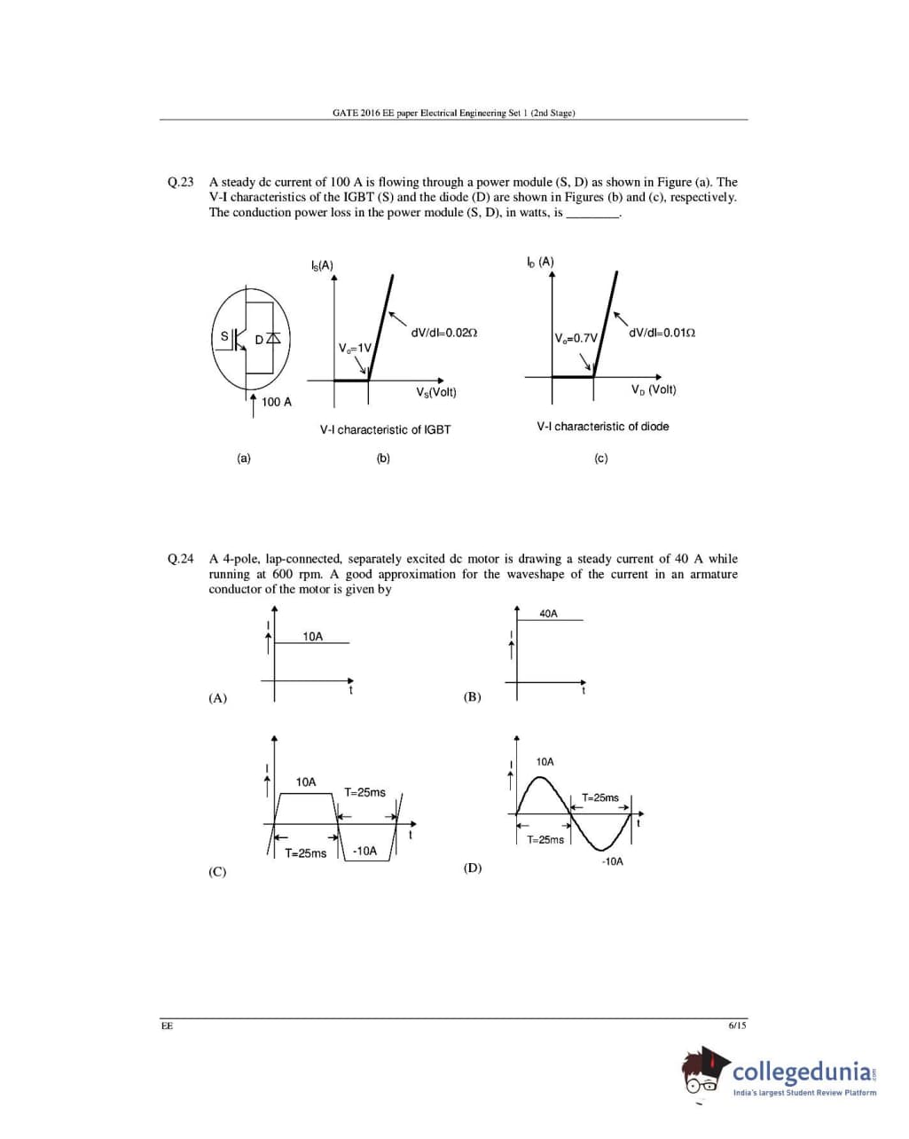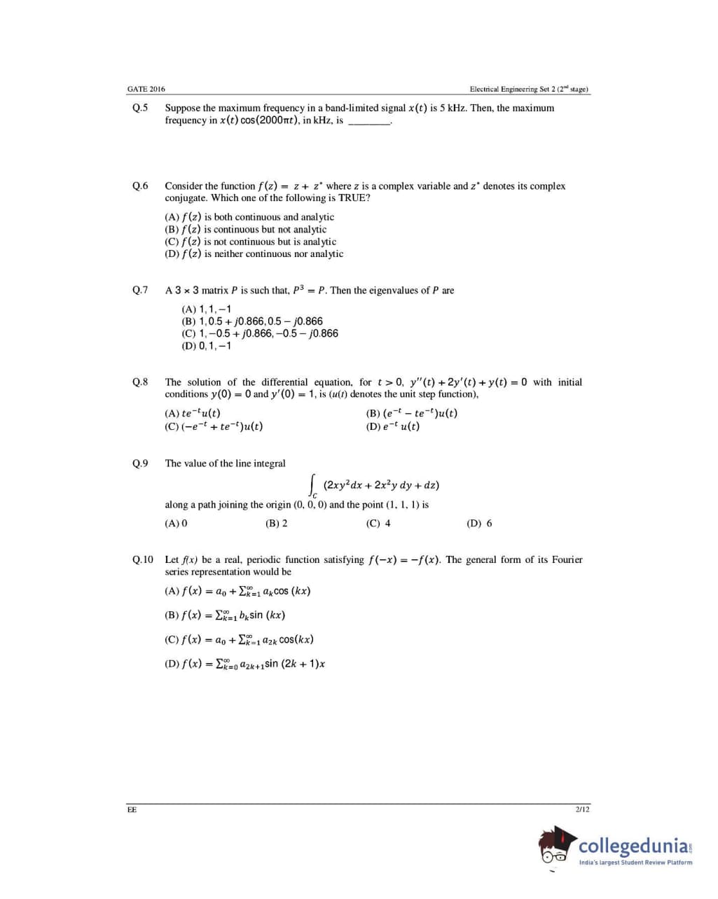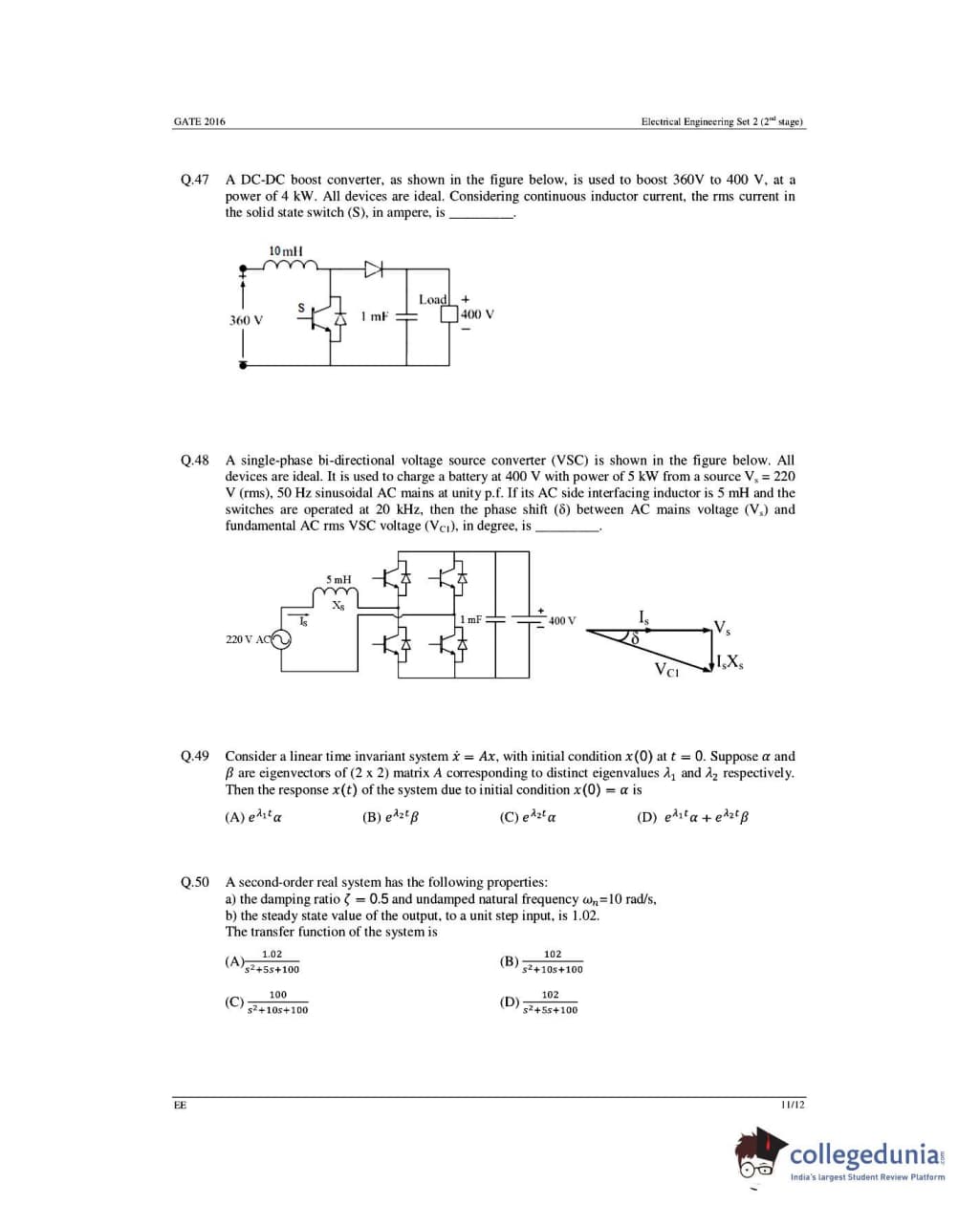 GATE 2016 Electrical Engineering (EE) Question Papers with Answer Key Pdfs- Slot 1 (February 6-Afternoon Session)