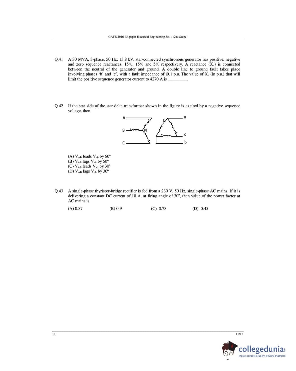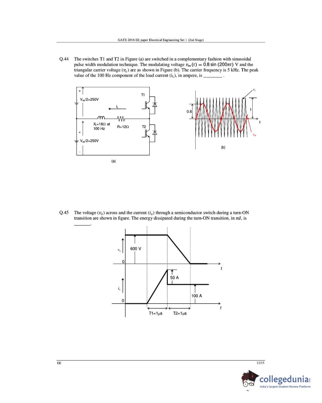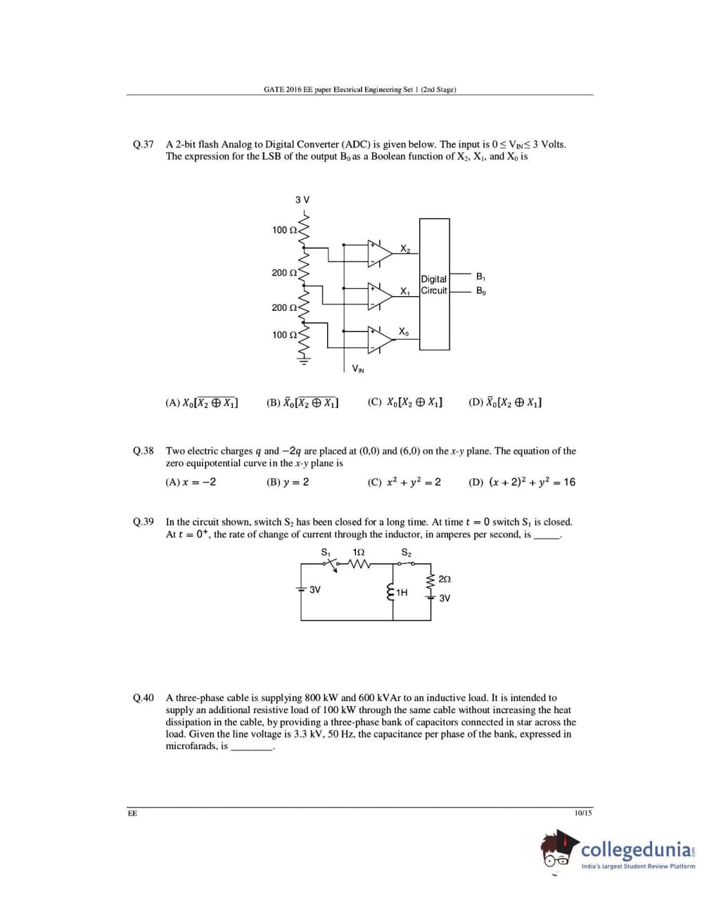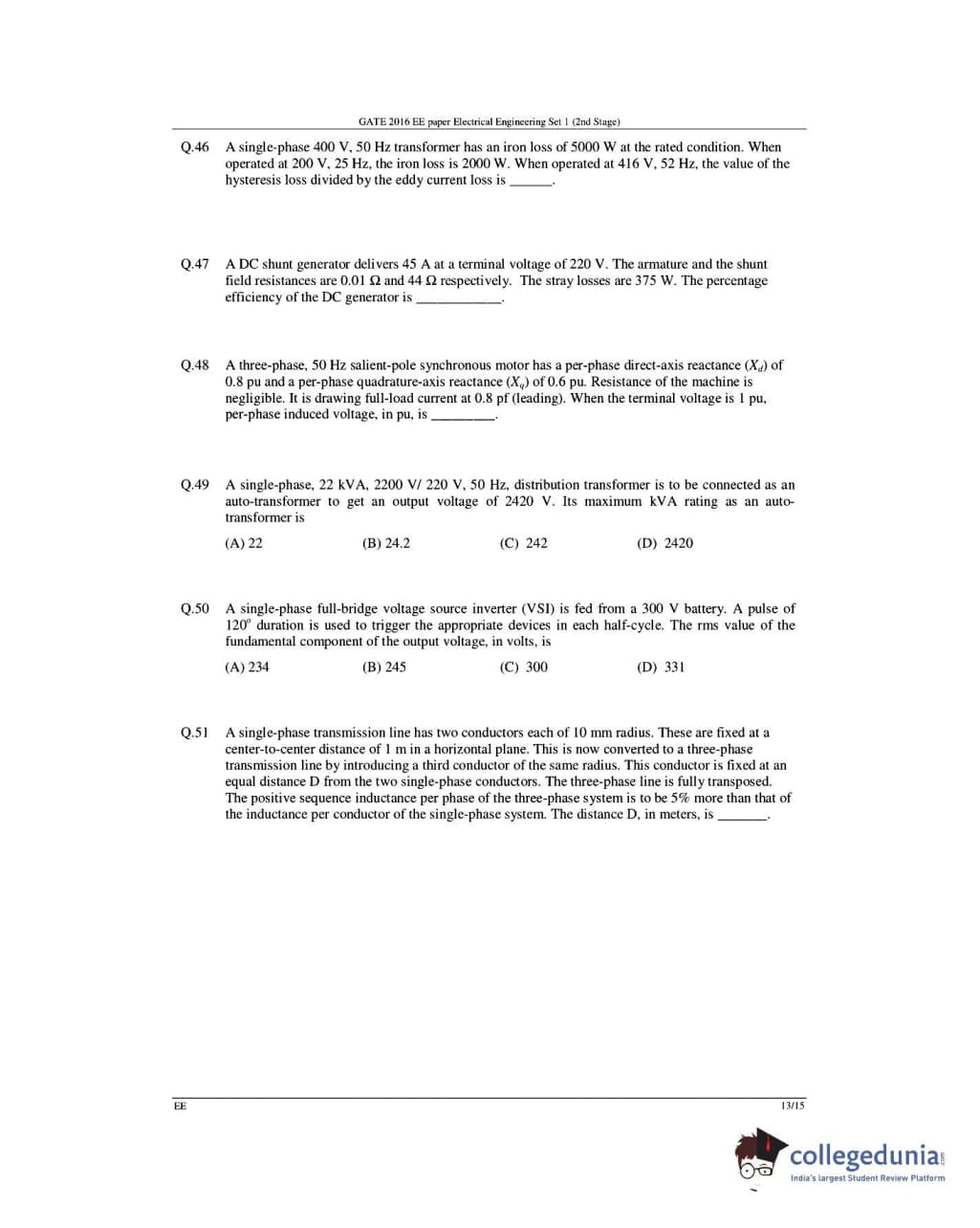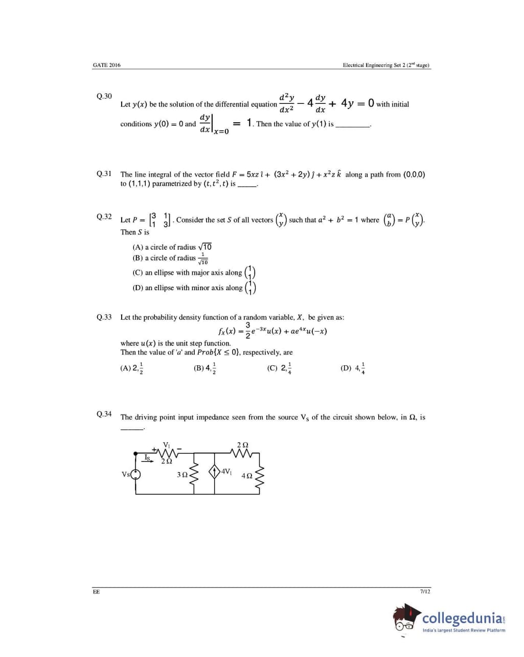 GATE 2016 Electrical Engineering (EE) Question Papers with Answer Key Pdfs- Slot 1 (February 6-Afternoon Session)