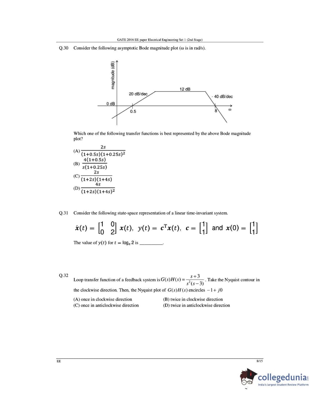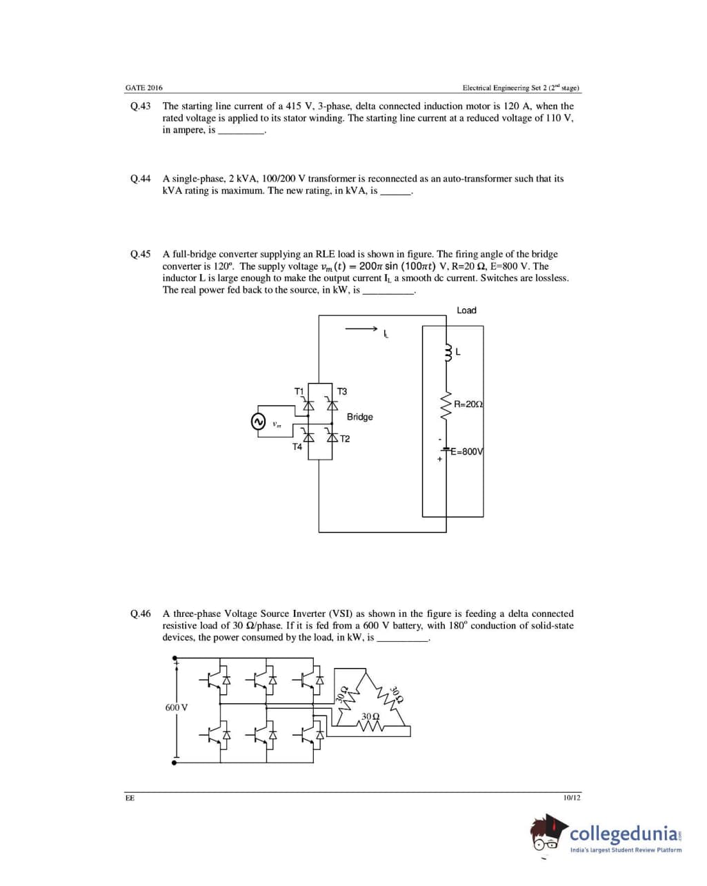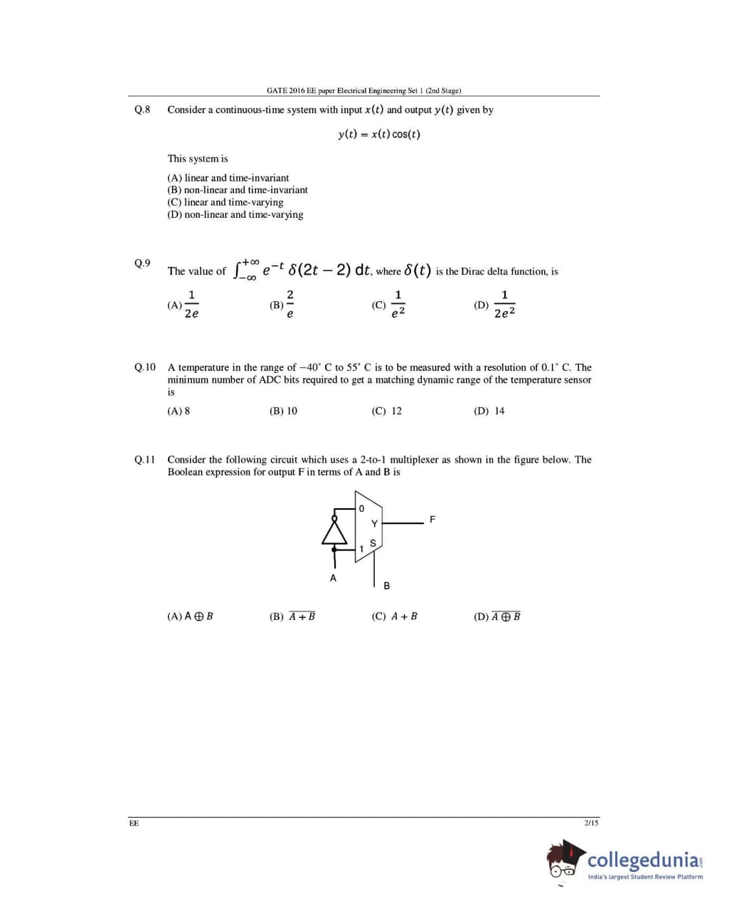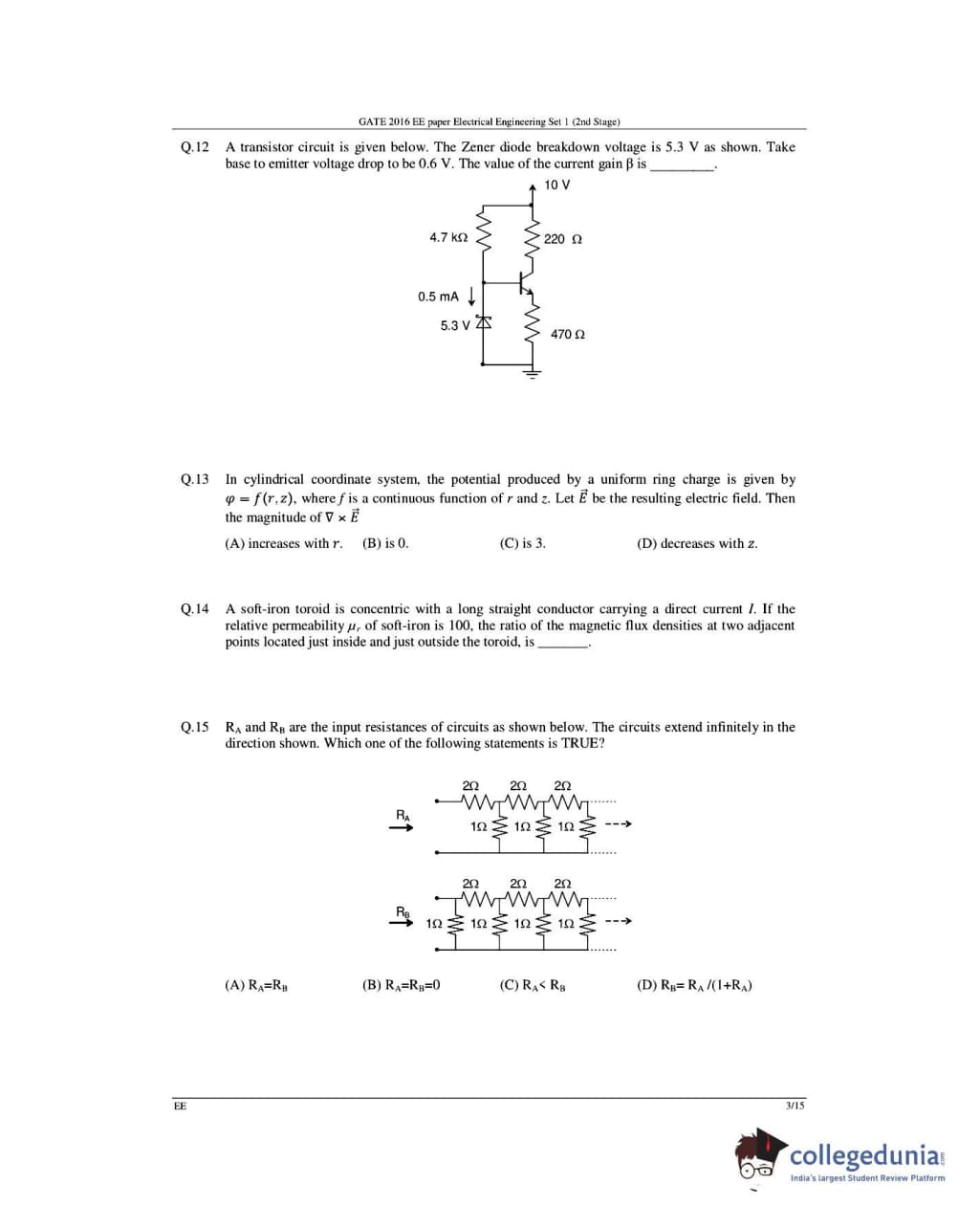 GATE 2016 Electrical Engineering (EE) Question Papers with Answer Key Pdfs- Slot 1 (February 6-Afternoon Session)