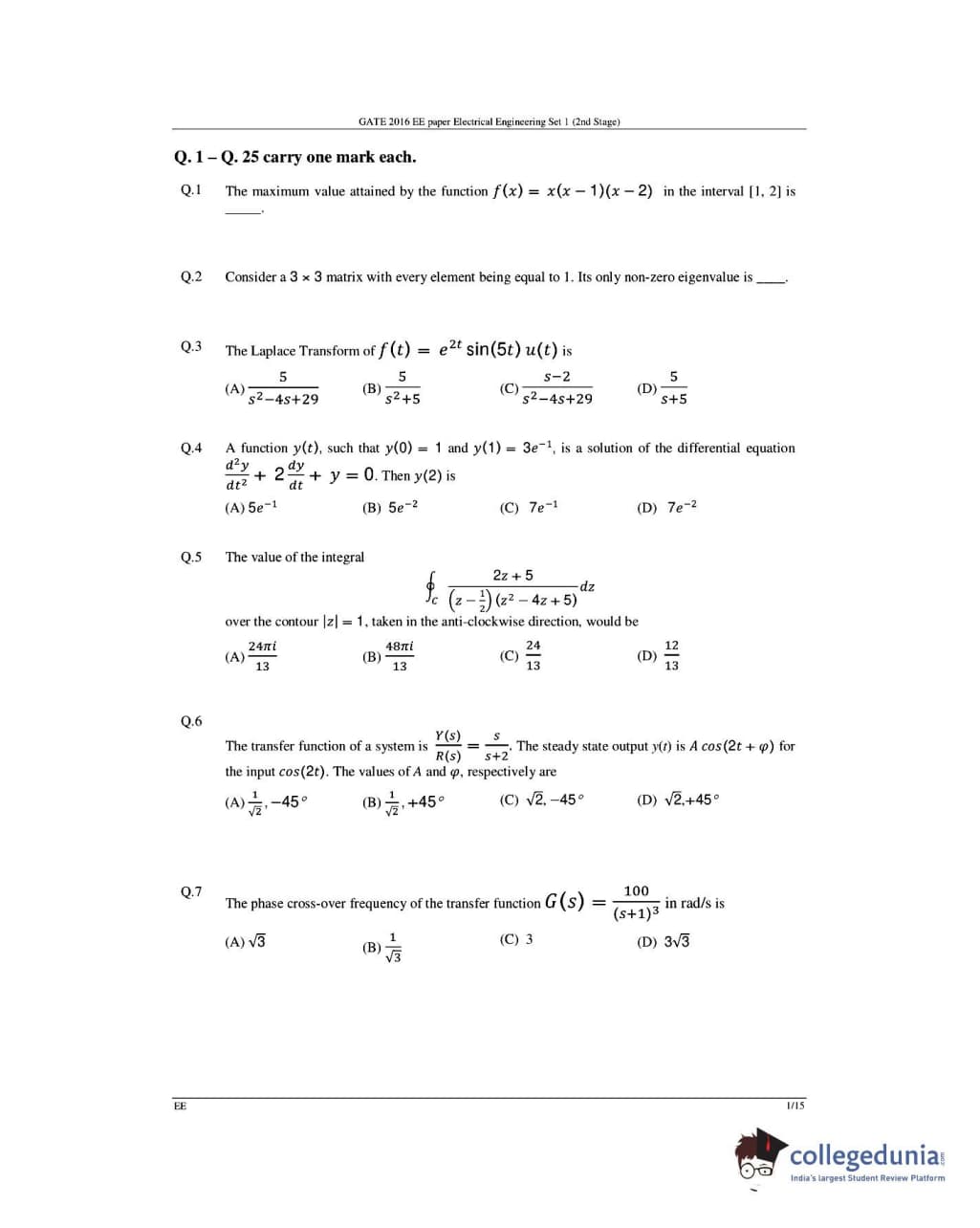 GATE 2016 Electrical Engineering (EE) Slot 1 Paper Analysis
