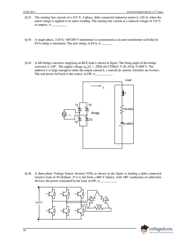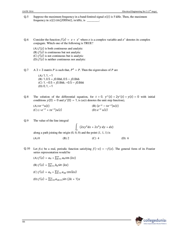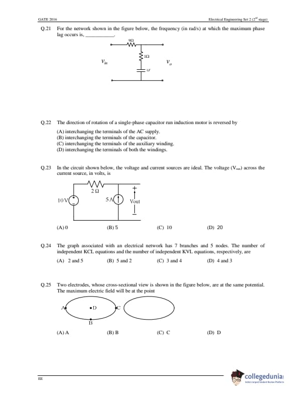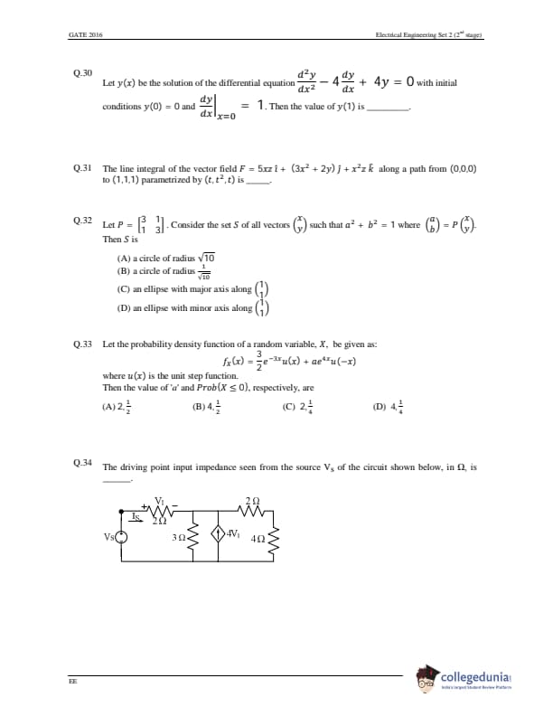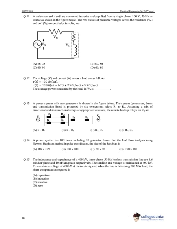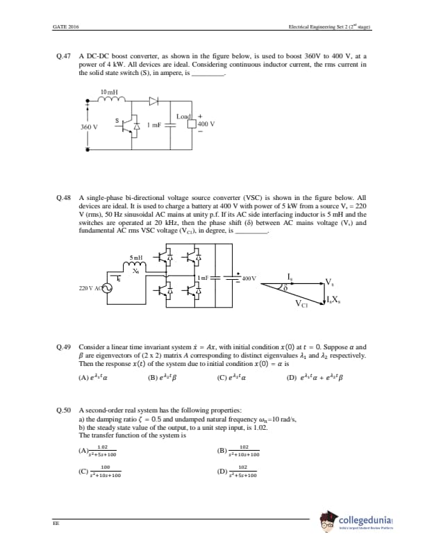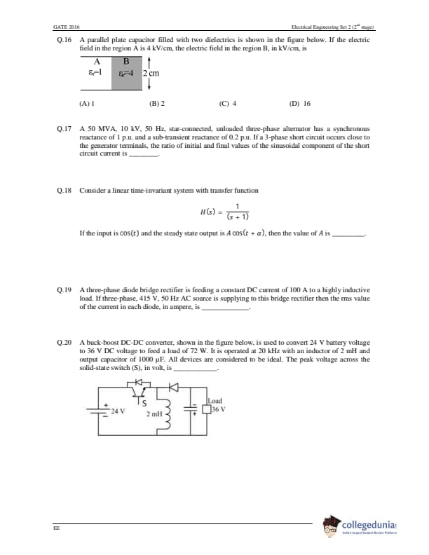 GATE 2016 Electrical Engineering (EE) Question Papers with Answer Key PDFs- Slot 2 (February 7 Afternoon Session)