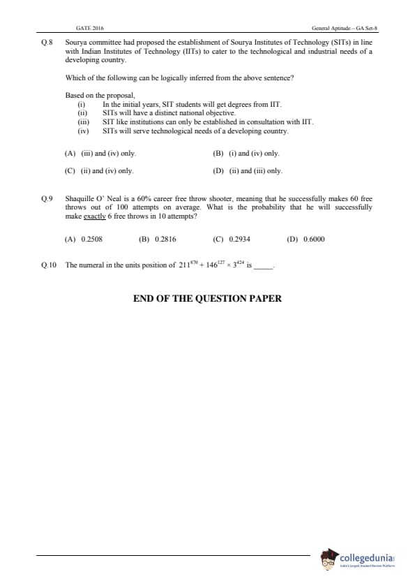 - The 15% of weightage of the overall question paper was carried by the section with the general aptitude.