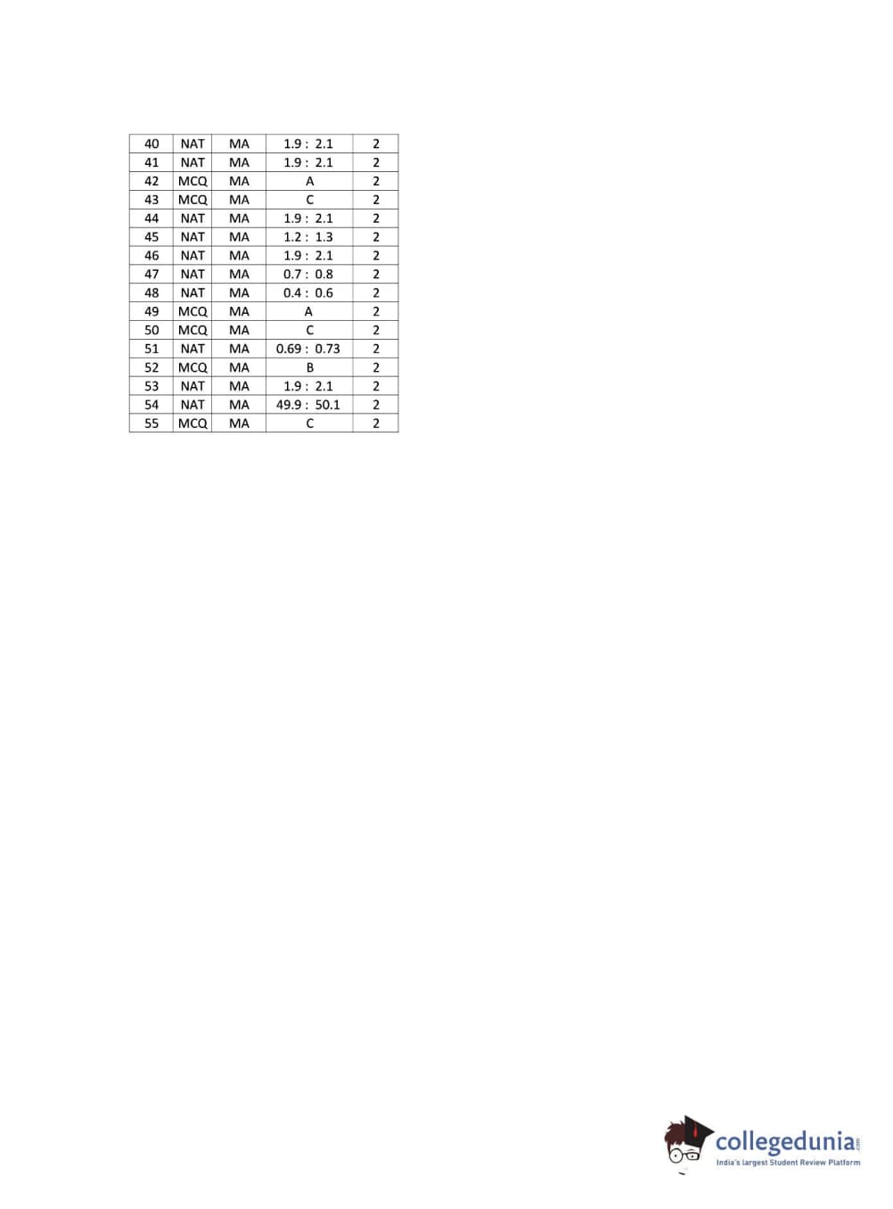 - The NAT questions comes with zero negative marking.