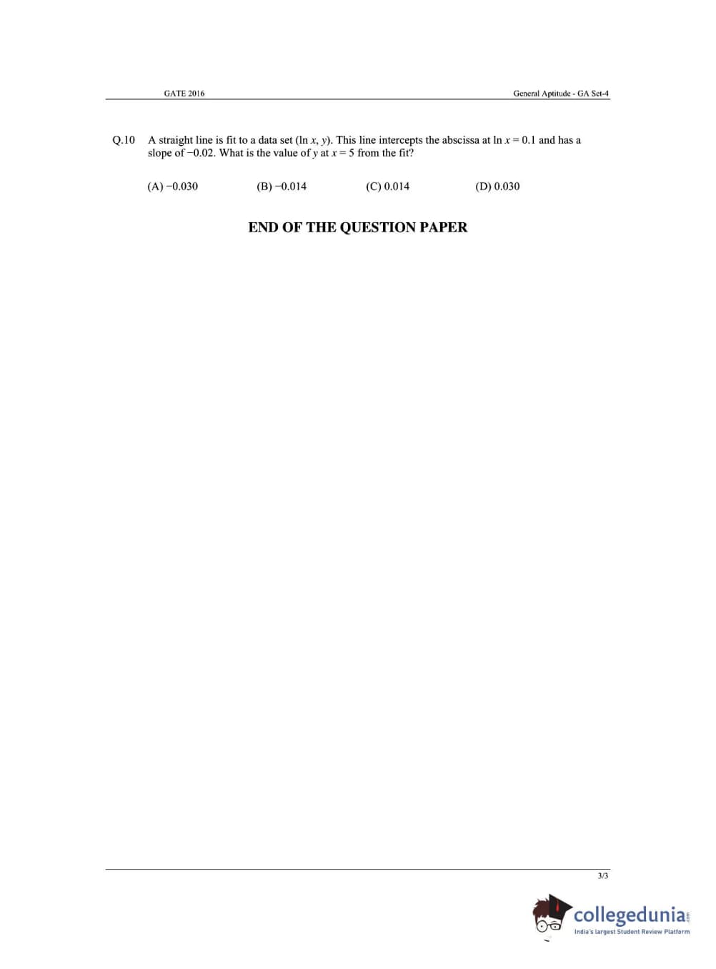 GATE Mathematics Question Papers and Answer Key PDFs are available to download. GATE 2016 MA paper was conducted by IISc, Bangalore on January 31, 2016 in the Afternoon Session (2 PM to 5 PM). The overall difficulty level of the exam stood at medium to difficult. General Aptitude had a weightage of 10% of the overall marks and was easy to attempt.
