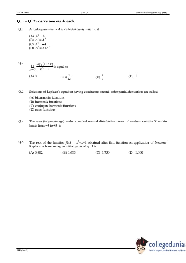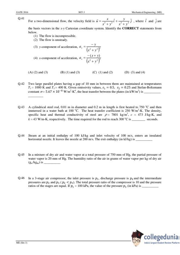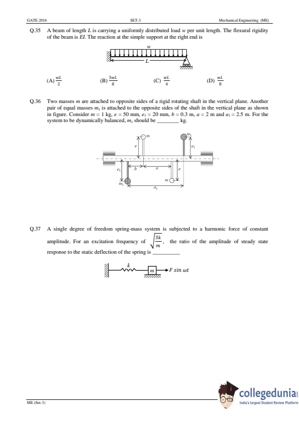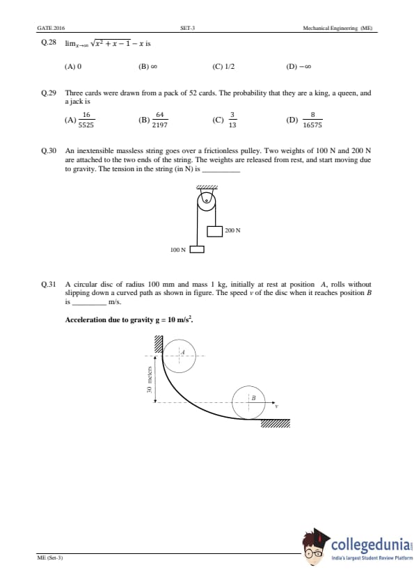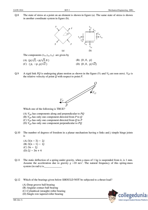 GATE 2016 Mechanical Engineering (ME) Slot-3 Question Paper with Answer Key PDFs (January 31 - Afternoon Session)