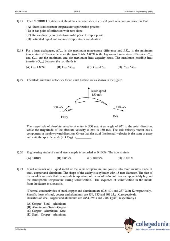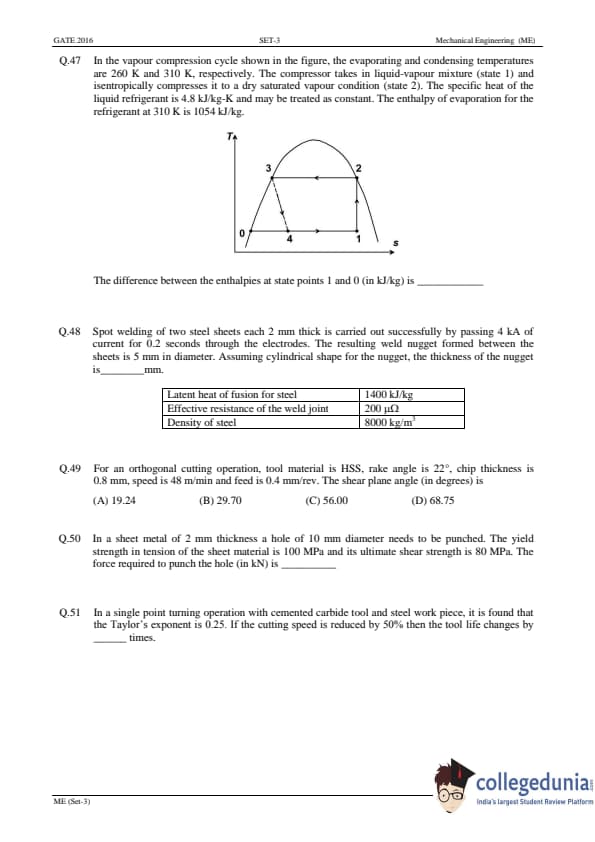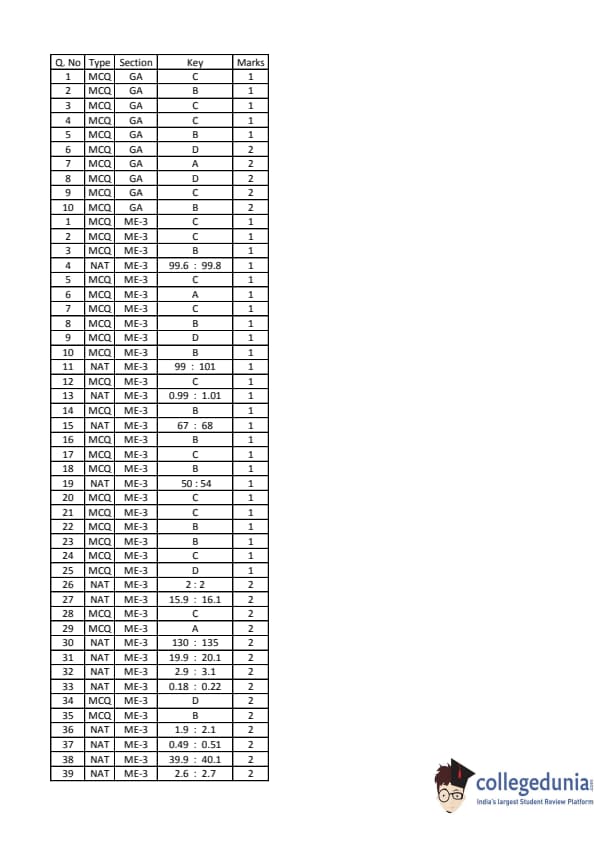 | GATE 2016 ME Slot 3 Question Paper | GATE 2016 ME Slot 3 Answer Key |