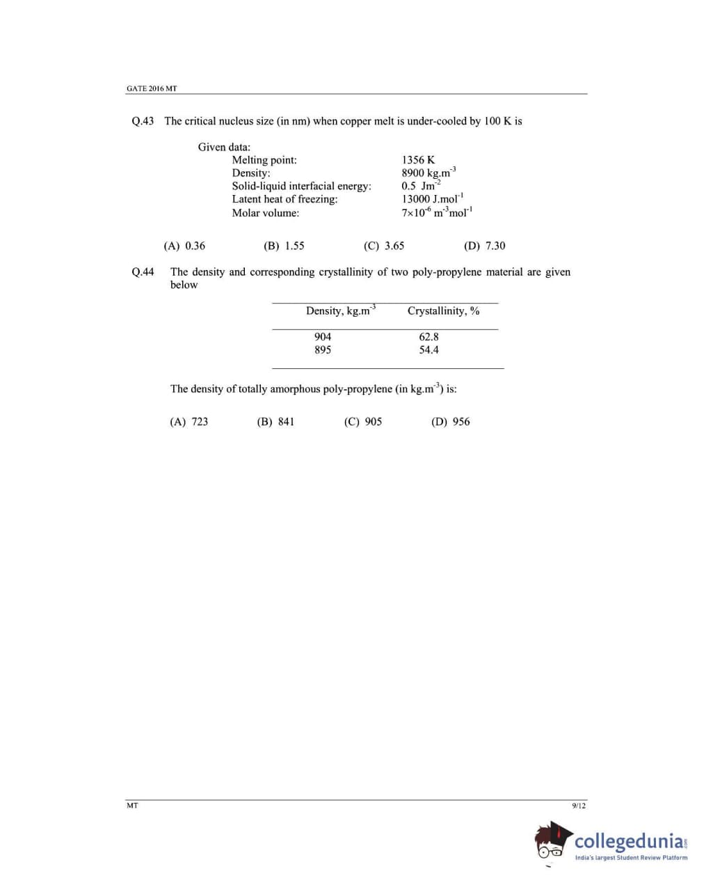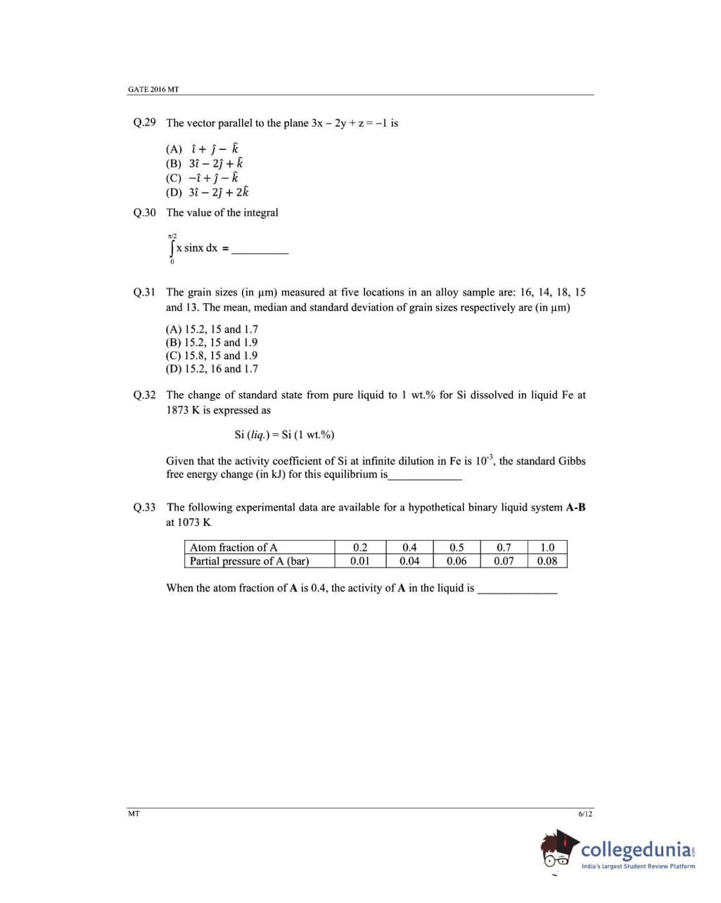 GATE 2016 MT Paper Analysis