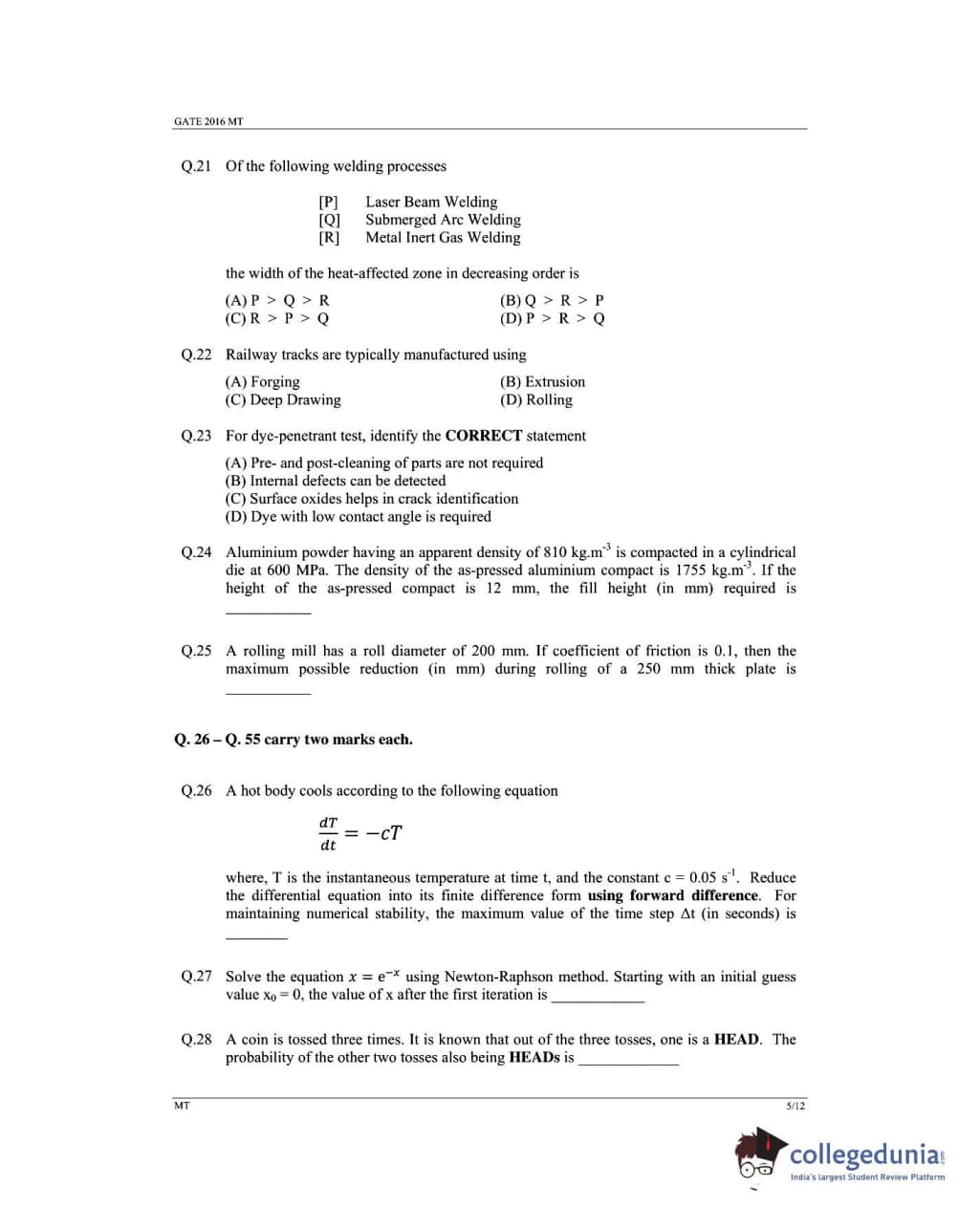 | GATE 2016 MT Question Paper | GATE 2016 MT Answer Key |