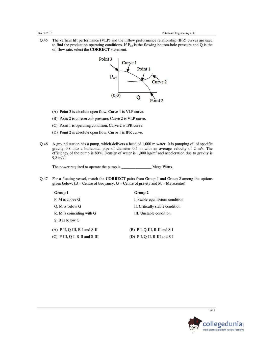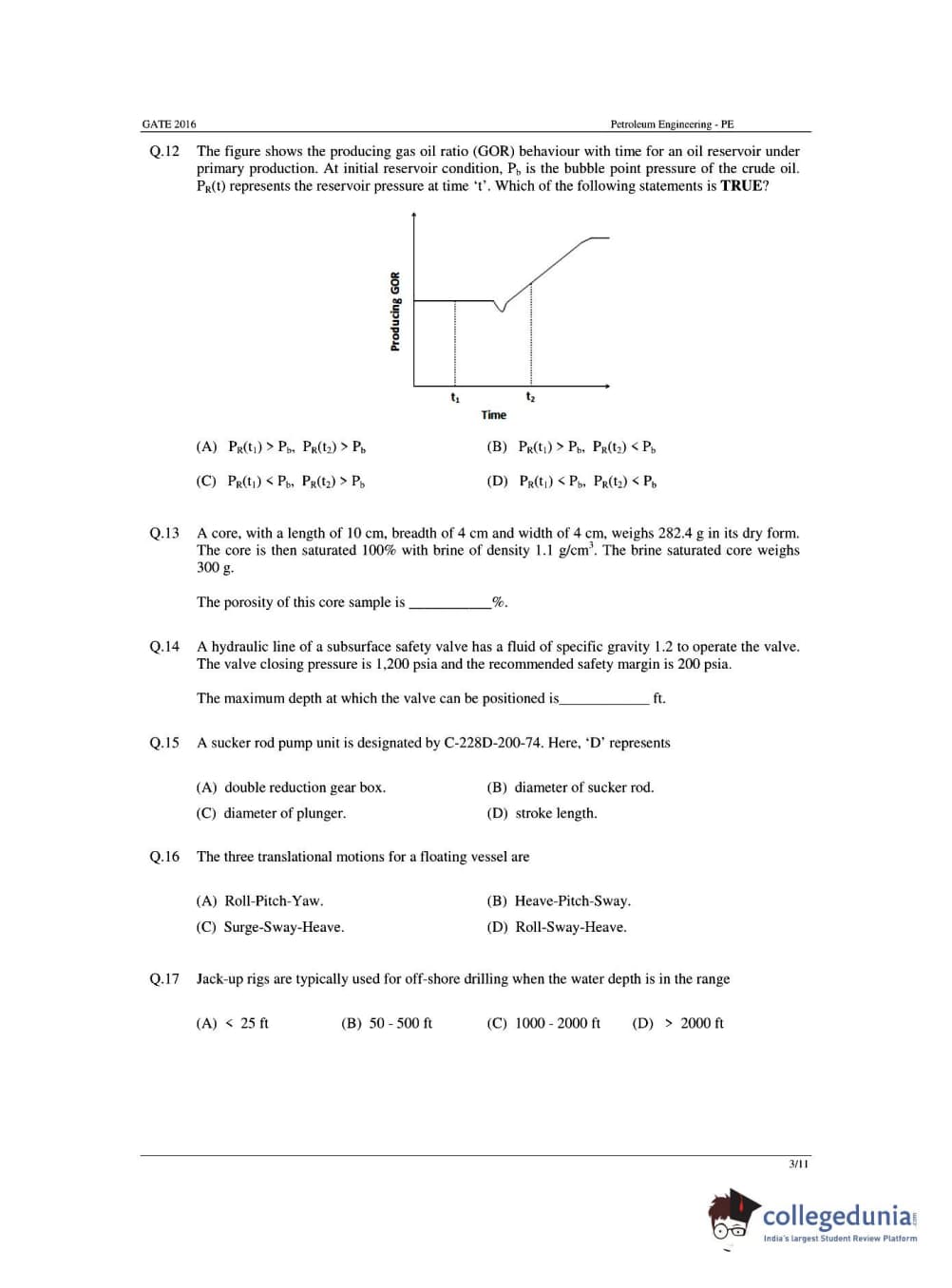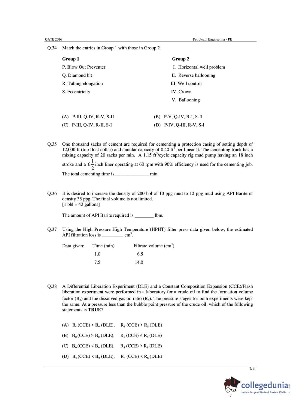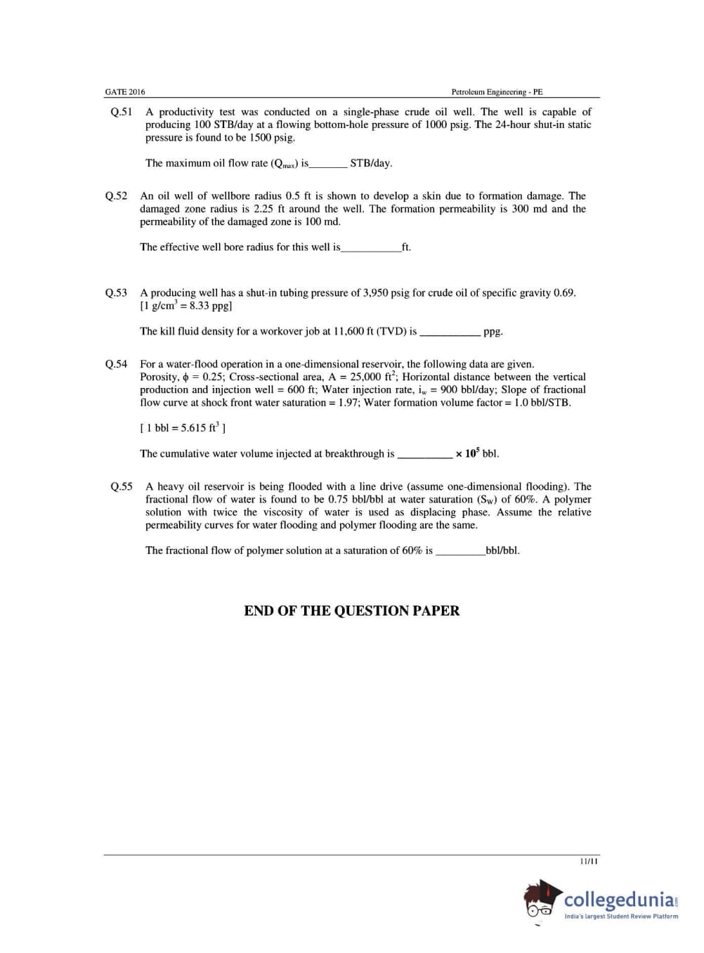 GATE 2016 Petroleum Engineering (PE) Question Paper with Answer Key PDFs -Afternoon Session