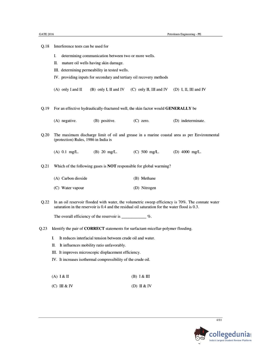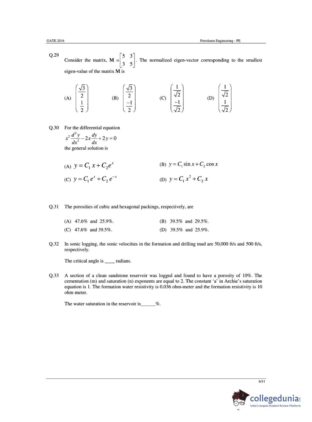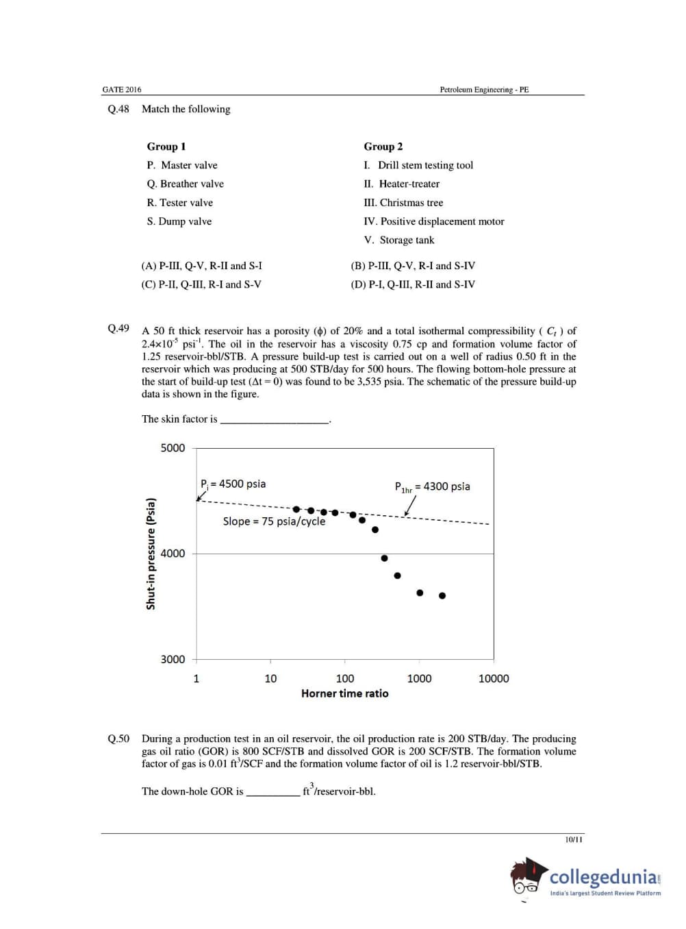 GATE 2016 Petroleum Engineering (PE) Question Paper with Answer Key PDFs -Afternoon Session