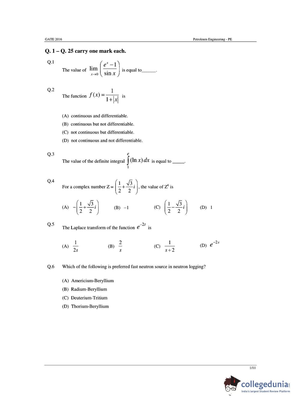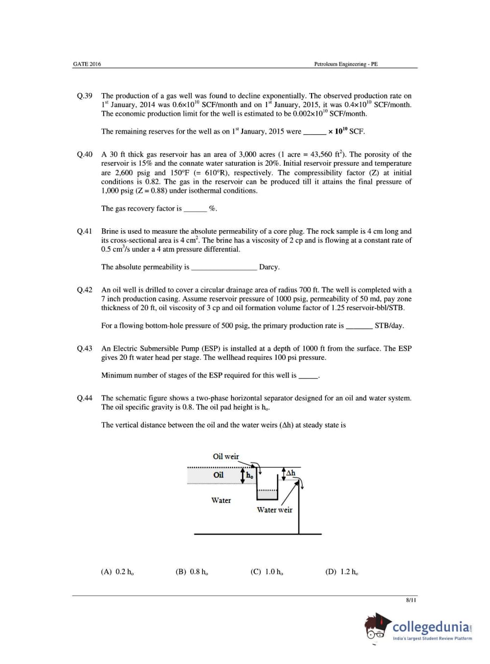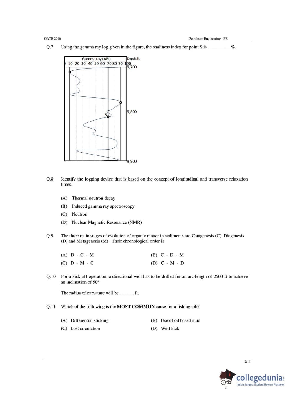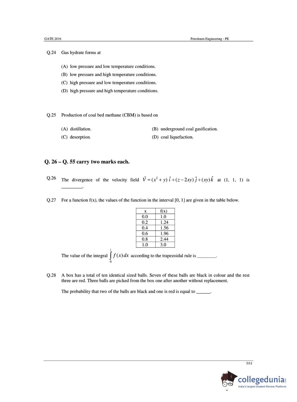 GATE 2016 Petroleum Engineering (PE) Question Paper with Answer Key PDFs -Afternoon Session