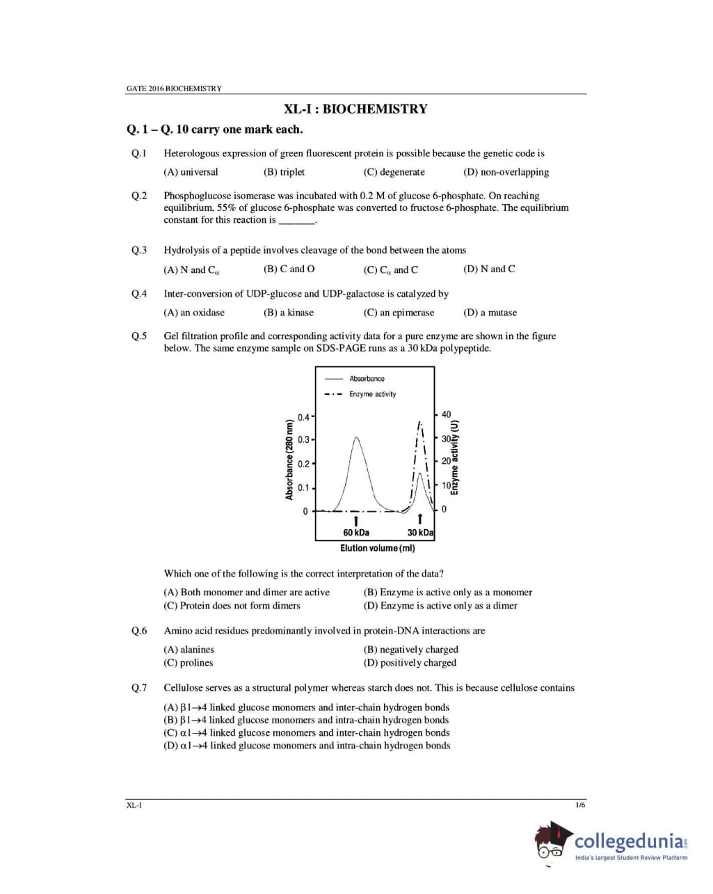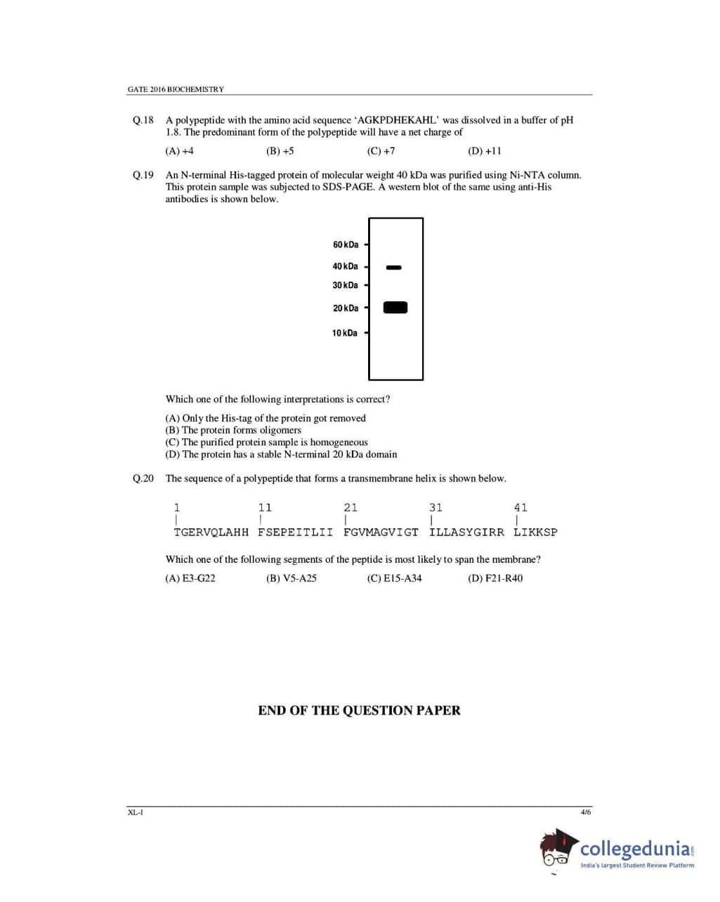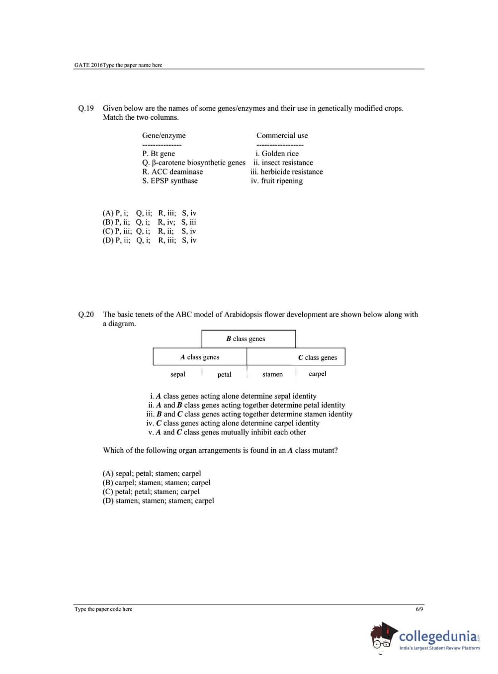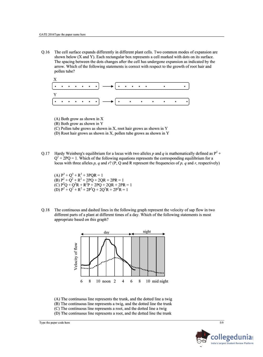 GATE 2016 Life Sciences (XL) question paper carries a total of 65 questions which are divided into 7 sections.