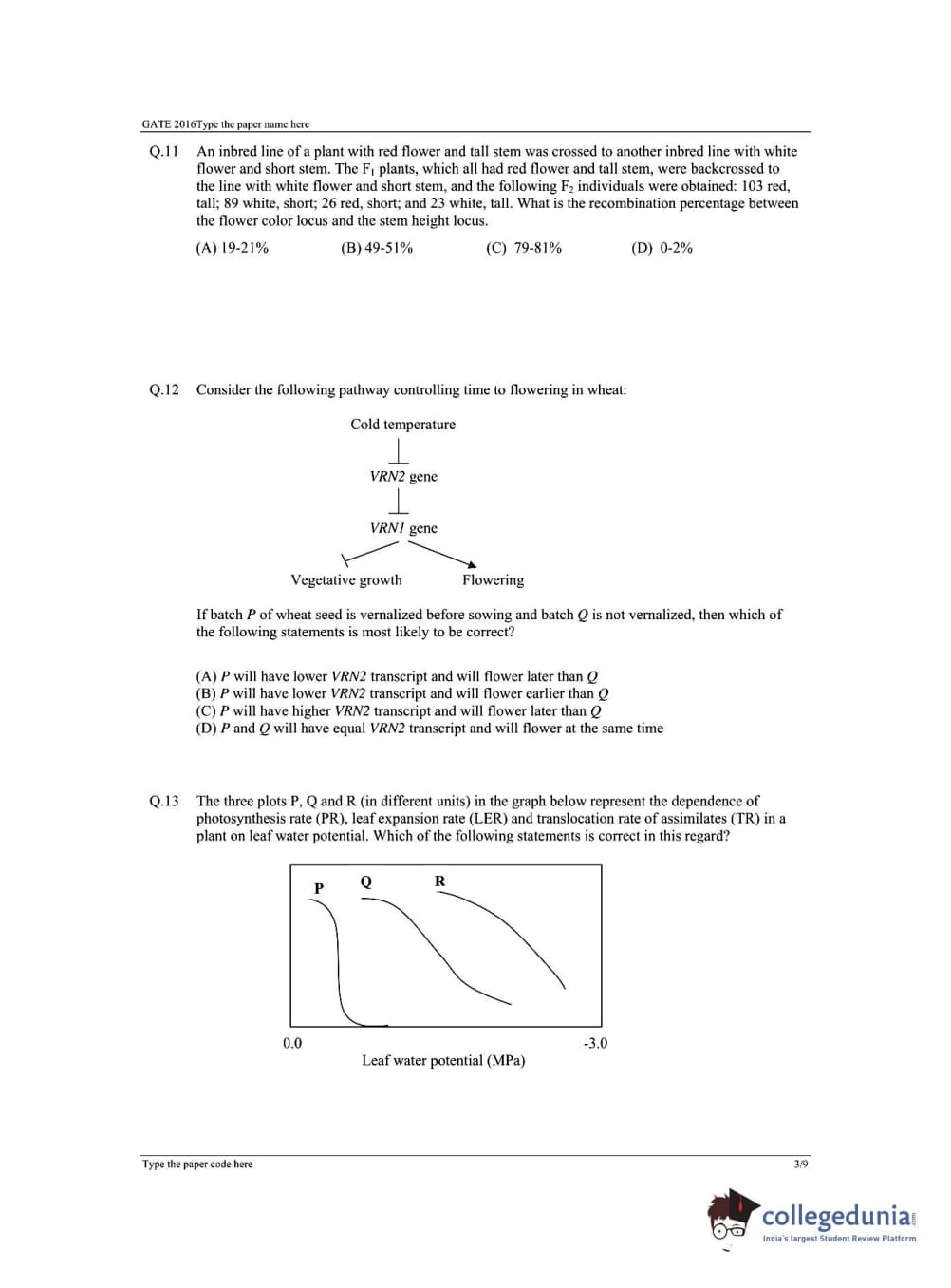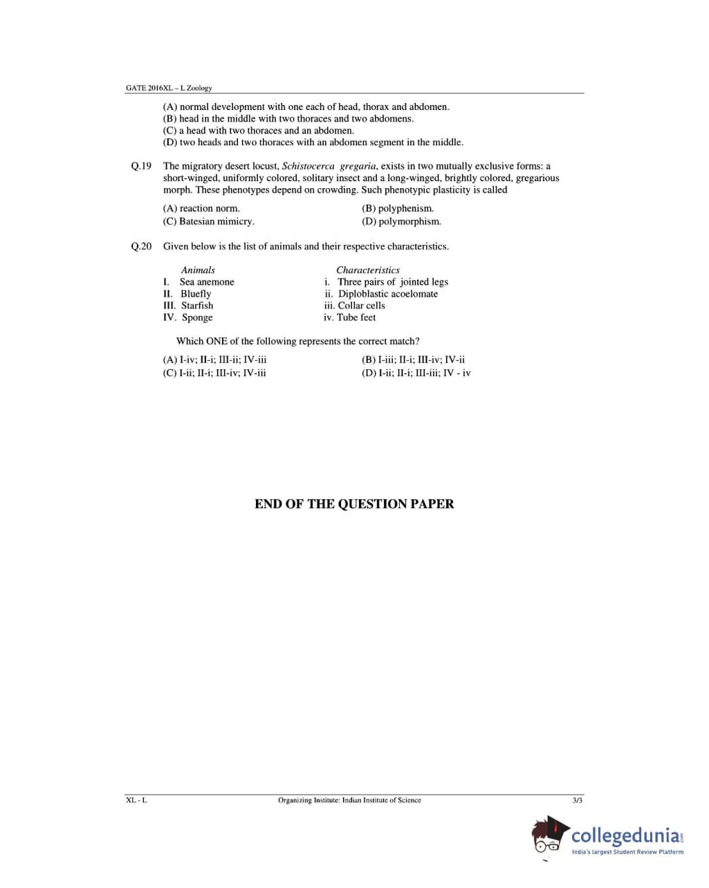 GATE 2016 Life Sciences (XL) Question papers with answer key PDFs are available to download. GATE 2016 XL paper was conducted by IISc on February 7, 2016, in the afternoon session. GATE 2016 XL question paper was divided into different sections containing multiple topics and sub–topics. However, students had rated the difficulty level to be easy. Sections involving technical questions, such as microbiology and in Botany were quite tricky but the pattern was almost similar to the previous year’s paper.