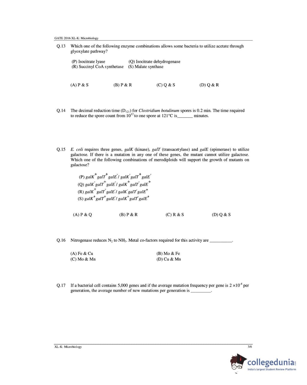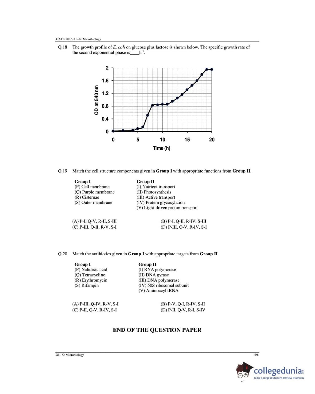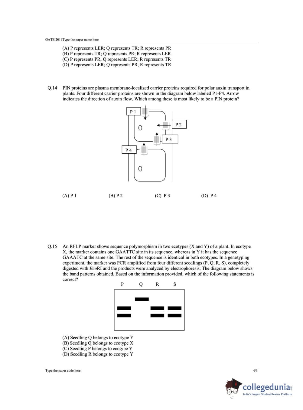 GATE 2016 Life Sciences (XL) Question Papers with Answer Key Pdf ( February 7- Afternoon Session)