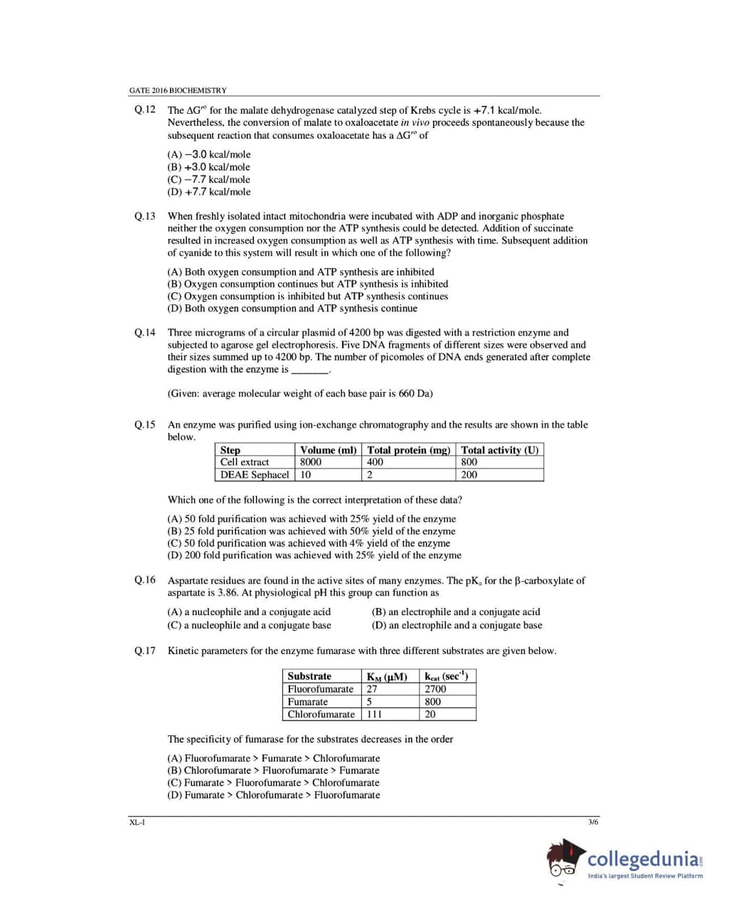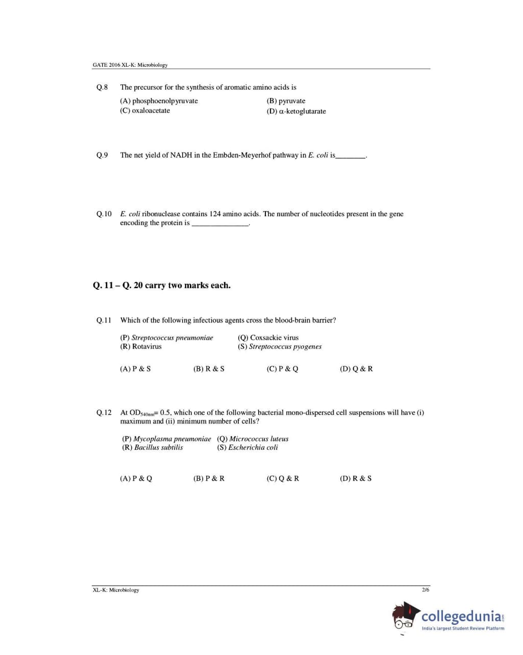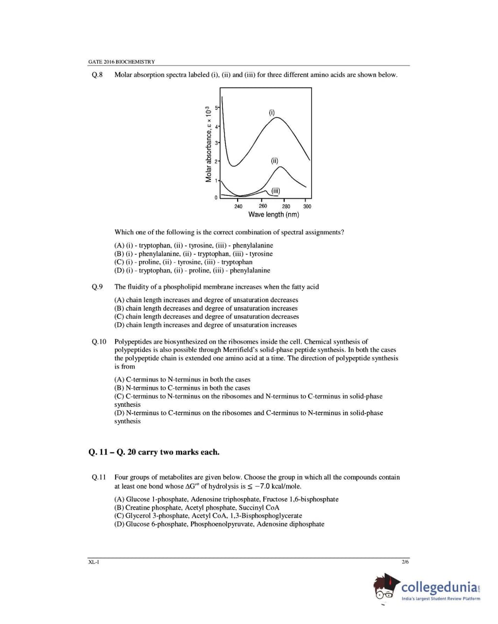 GATE 2016 Life Sciences (XL) Question Papers with Answer Key Pdf ( February 7- Afternoon Session)