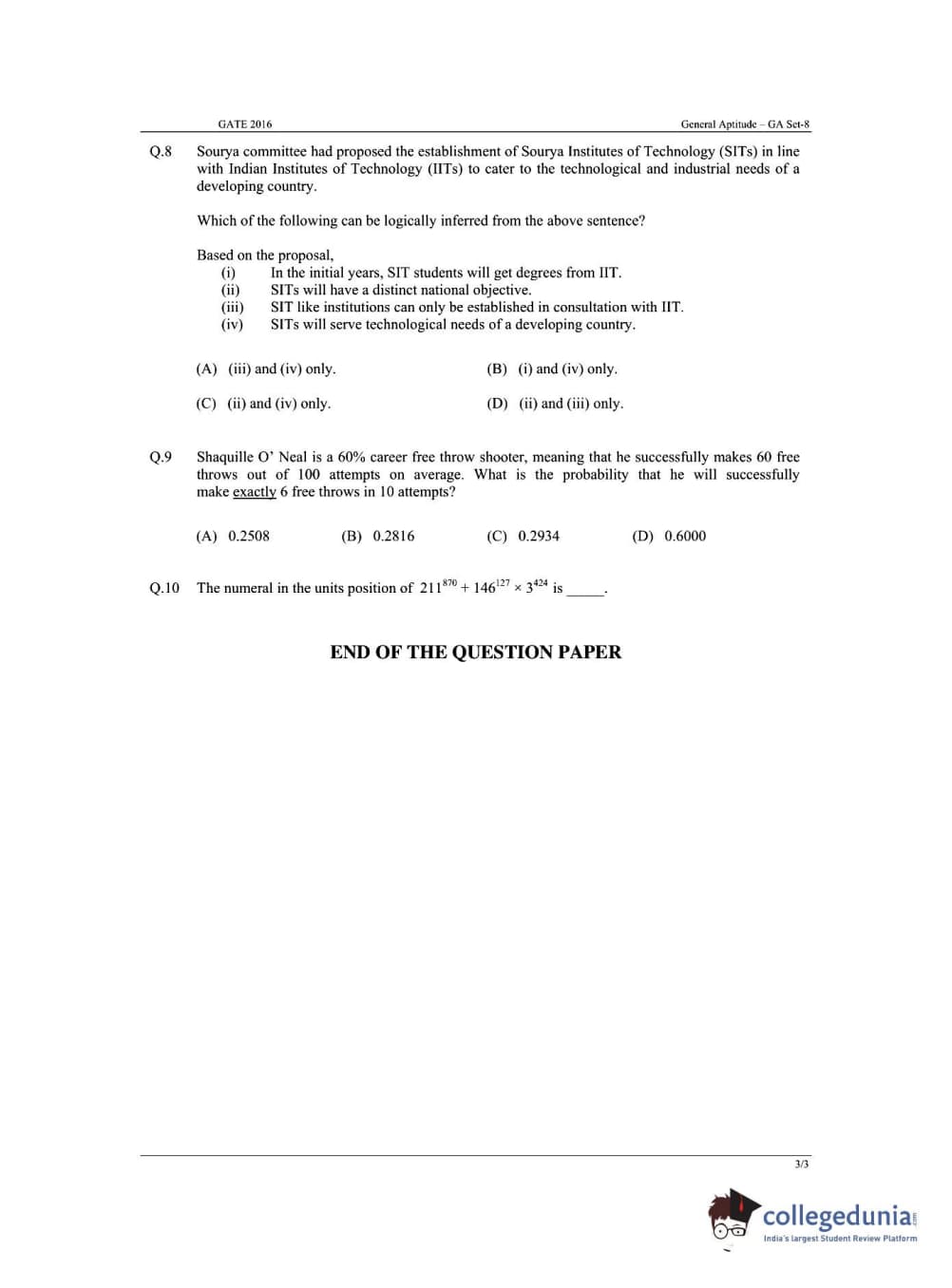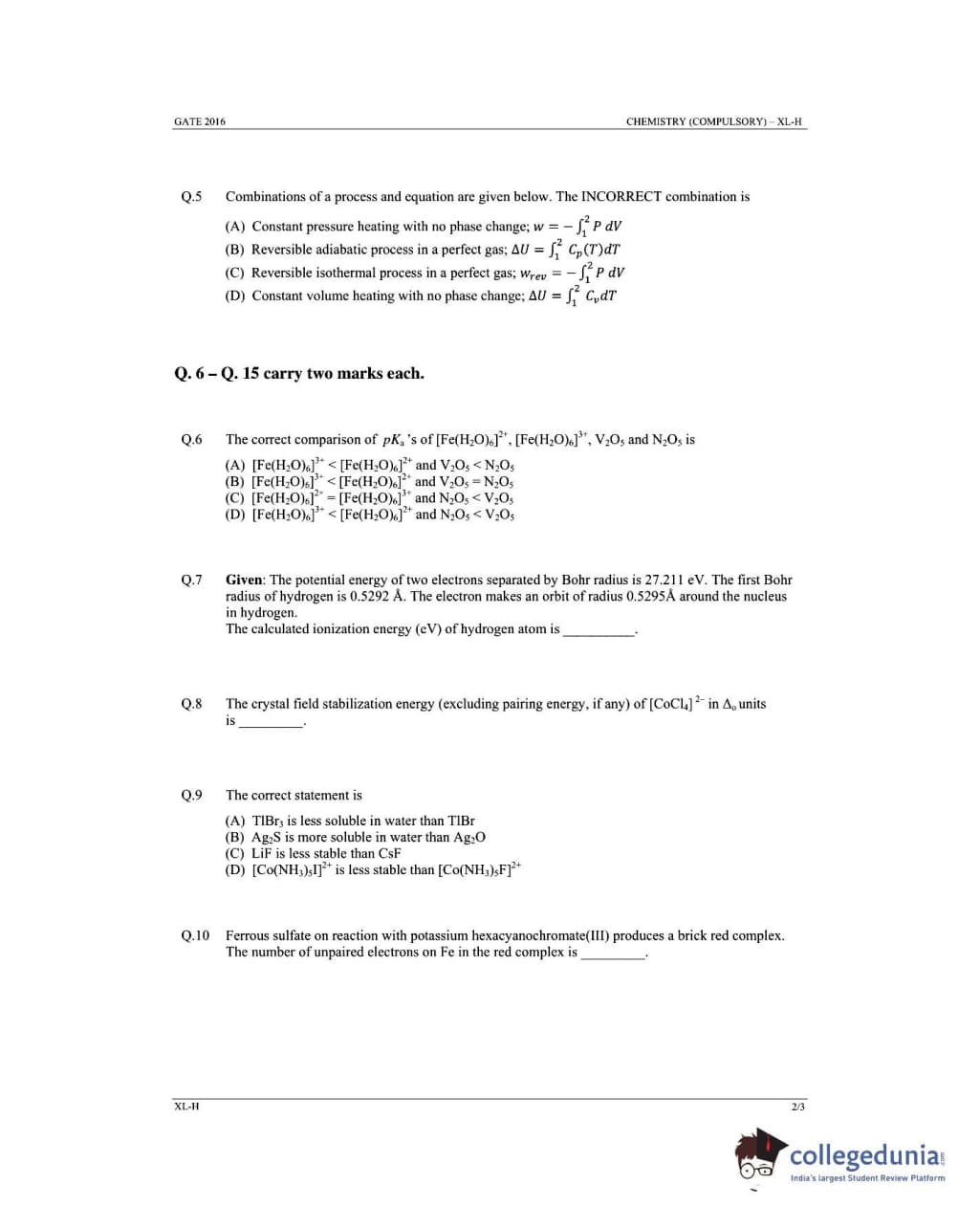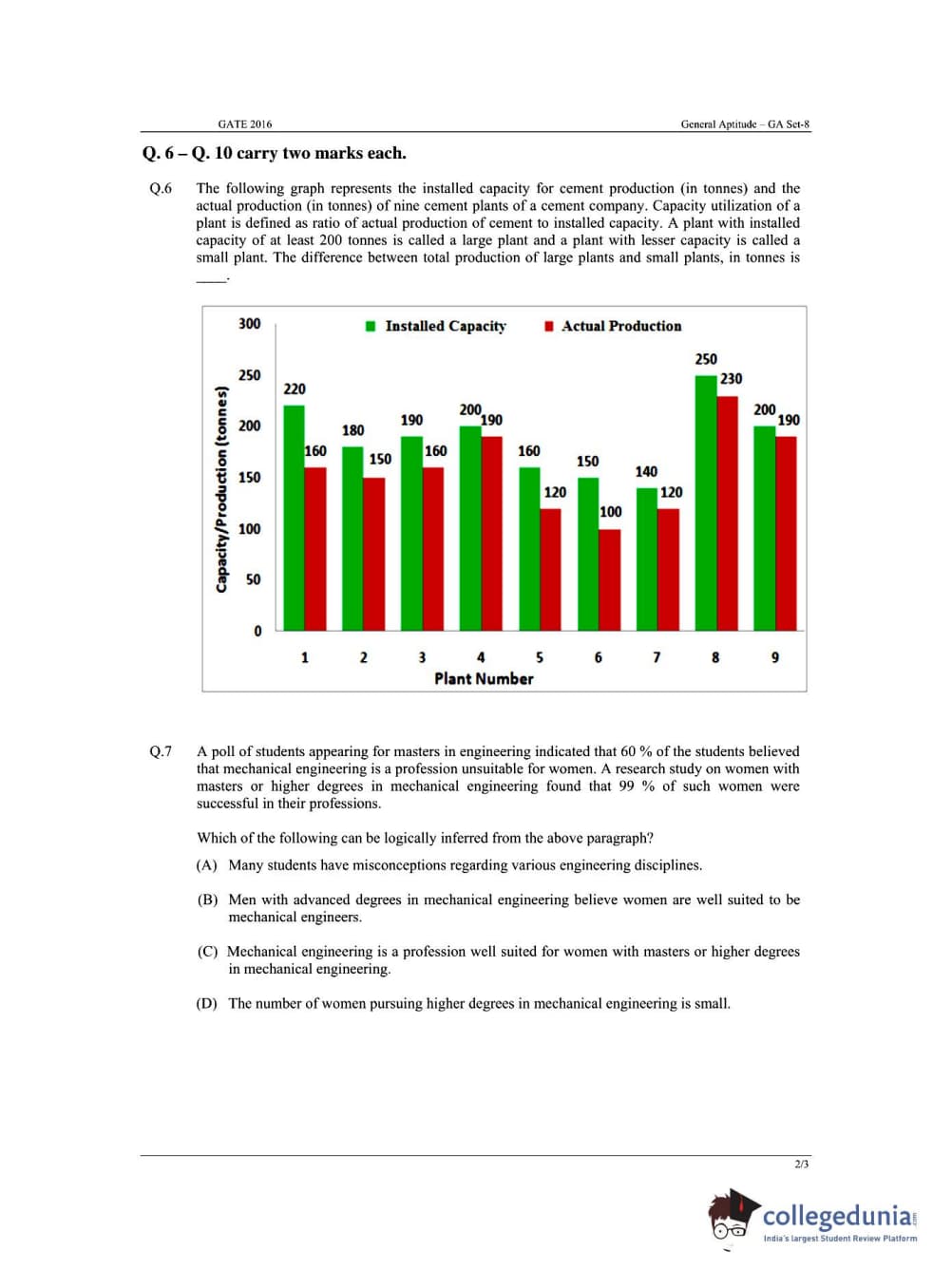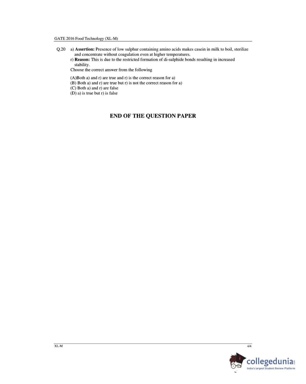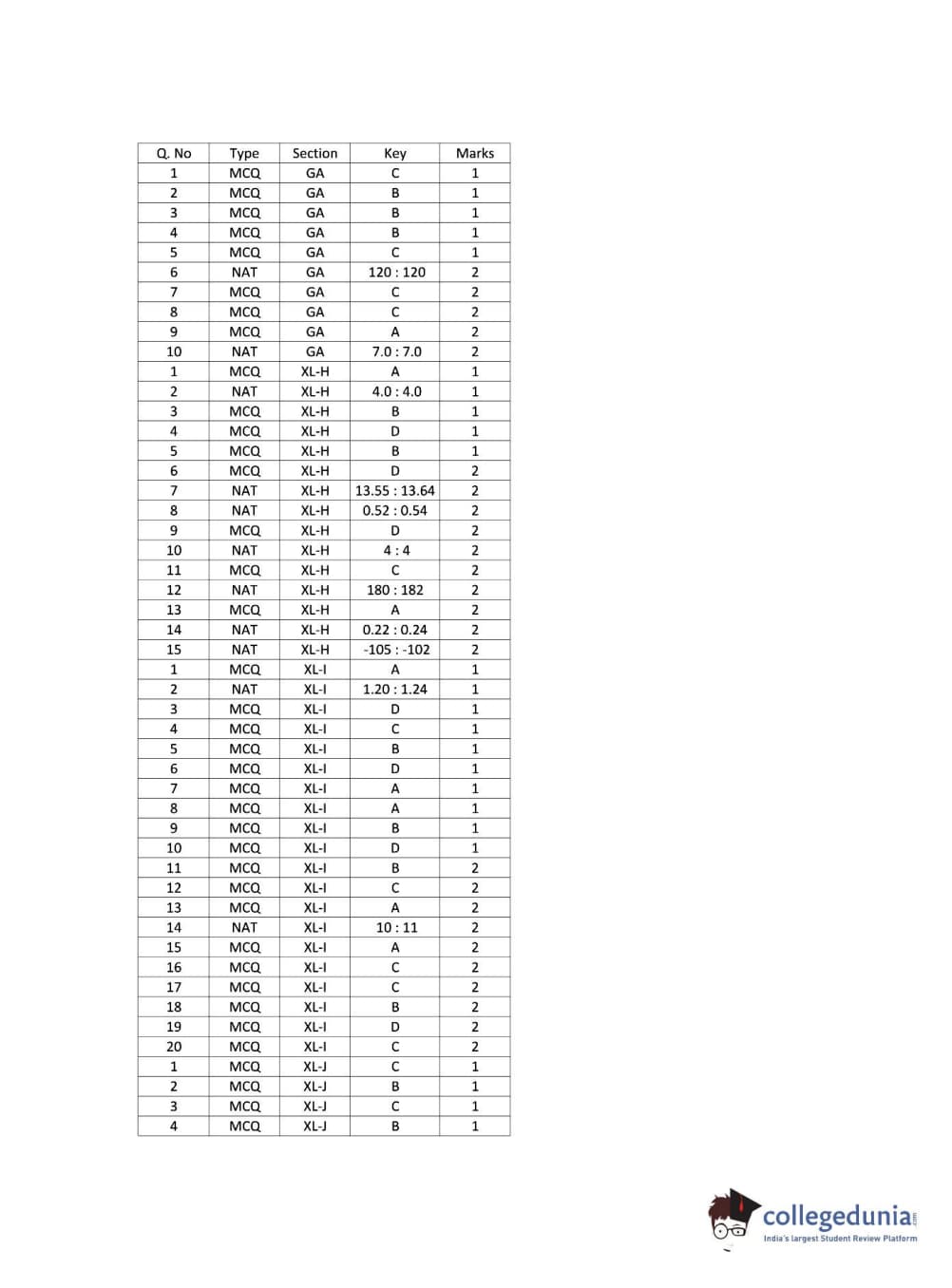 | GATE 2016 XL Question Paper | GATE 2016 XL Answer Key |