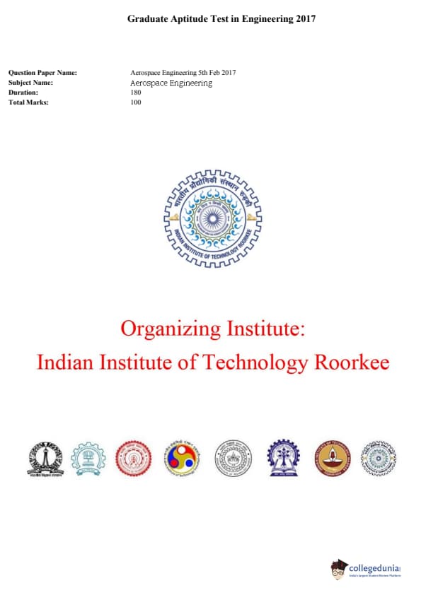 GATE 2017 AE Question Paper with Answer Key PDF is available for download. GATE 2017 AE paper was conducted by IIT Roorkee on February 05, 2017 in the afternoon session. GATE AE question paper 2017 comprised 65 questions- 10 from the General Aptitude section and 55 from the core Aerospace Engineering section. The overall difficulty level of GATE 2017 AE question paper was rated moderate.