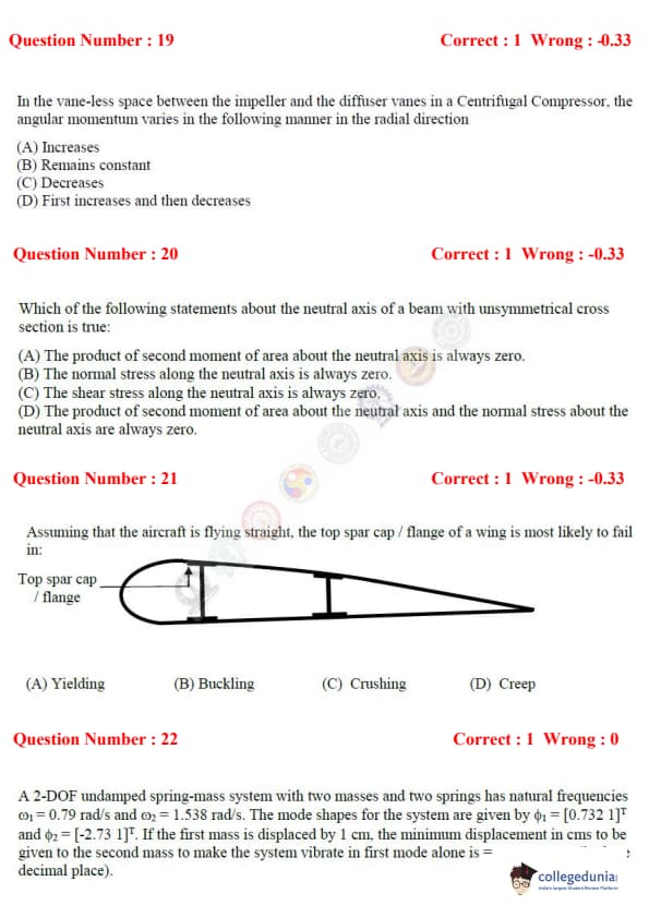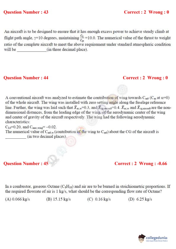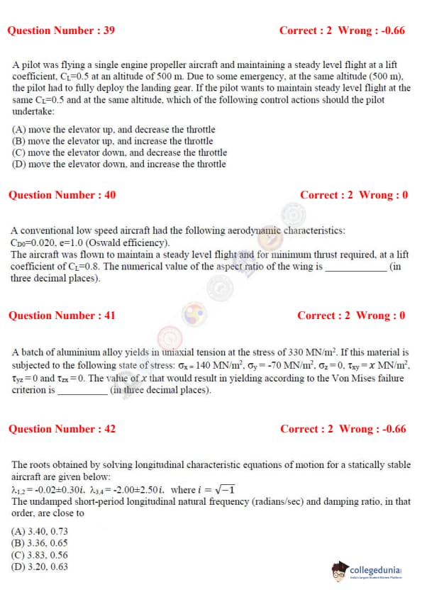 - GATE AE question paper comprised questions from topics like Engineering Mathematics, Flight Mechanics, Space Dynamics, Aerodynamics, Structure, and Propulsion.