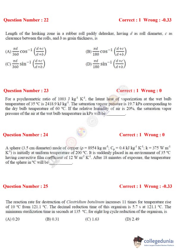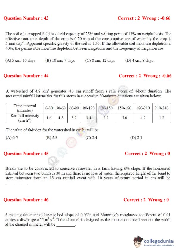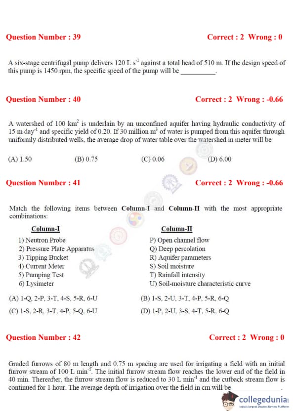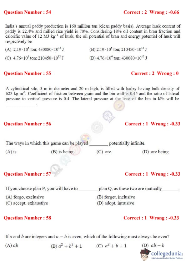 GATE 2017 Agriculture Engineering (AG) Question Paper with Answer Key PDFs – (February 4, 2022 - Afternoon session)