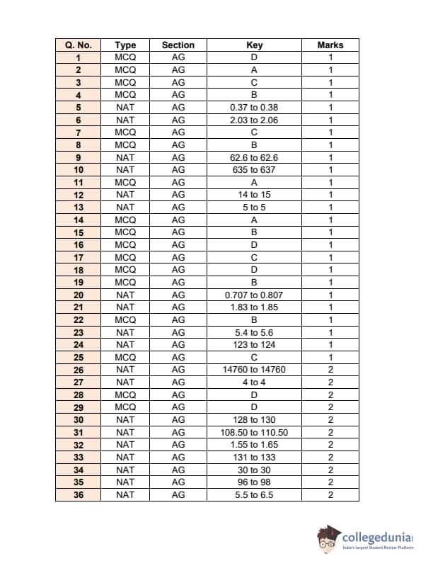| GATE 2017 AG Question Paper | GATE 2017 AG Answer Key |