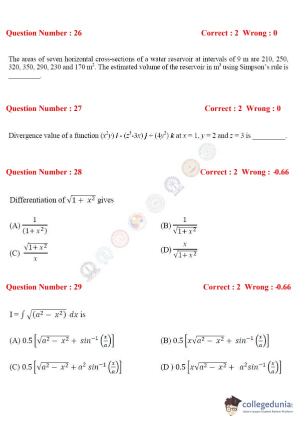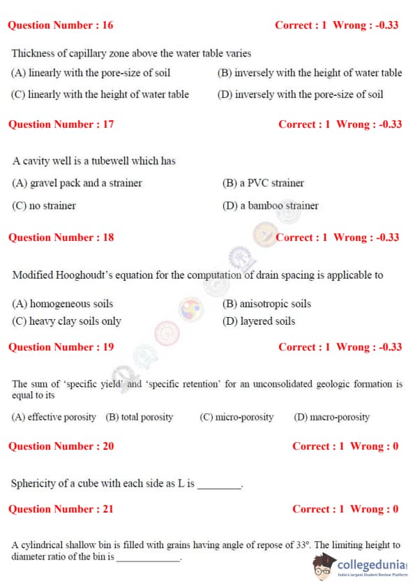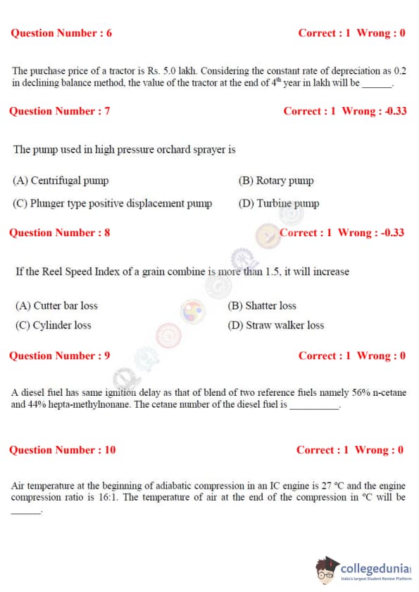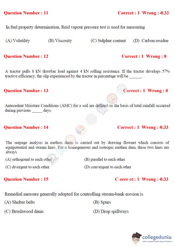 The exam consisted of two types of question patterns i.e MCQ (Multiple Choice Question) and NAT (Numerical Multiple Type). The total marks of the GATE AG 2017 were 100.