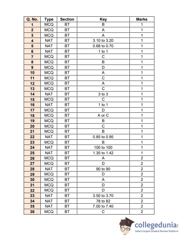 | GATE 2017 BT Question Paper | GATE 2017 BT Answer Key |