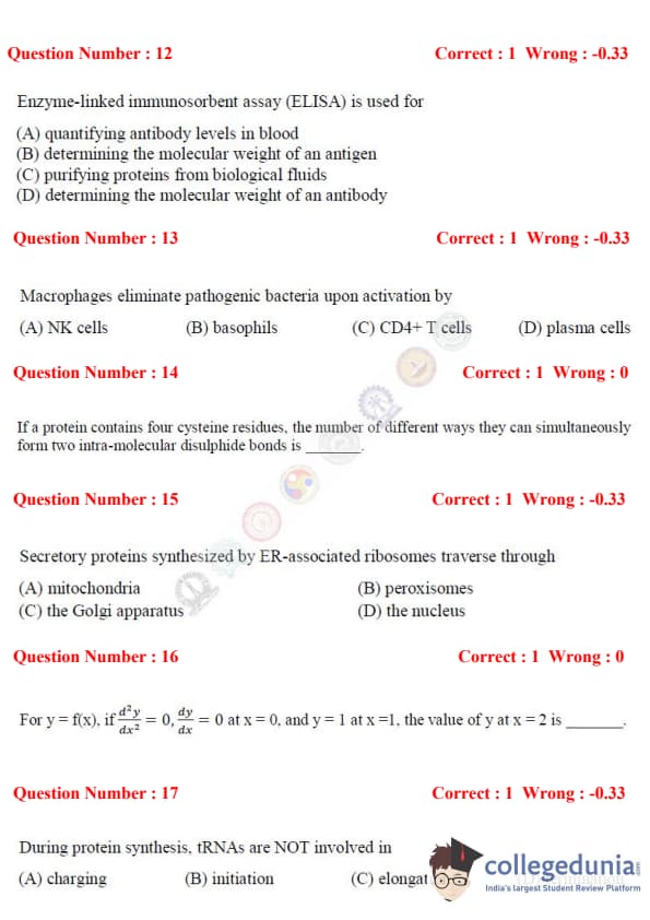 GATE 2017 Biotechnology (BT) Question Paper with Answer Key PDFs – (February 5 - Forenoon Session)