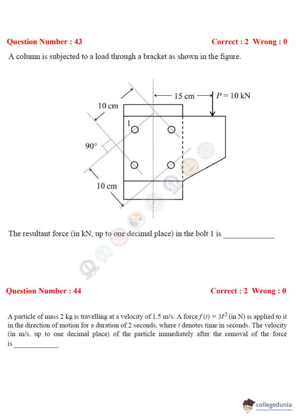 - There were only 1 question, carrying 2 marks, listed from sections such as CMM and Engineering Mechanics, and Bolted Connection
