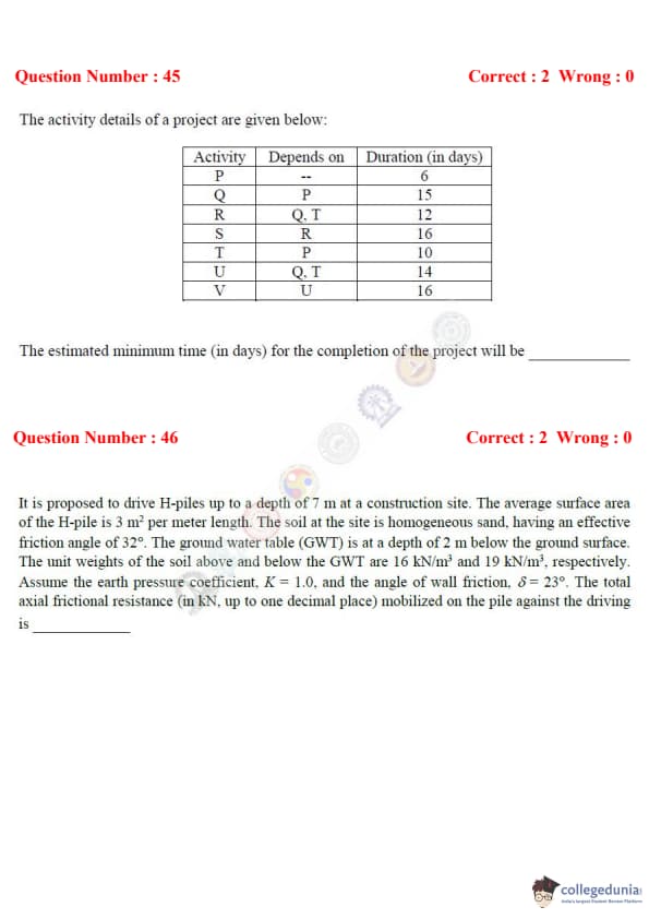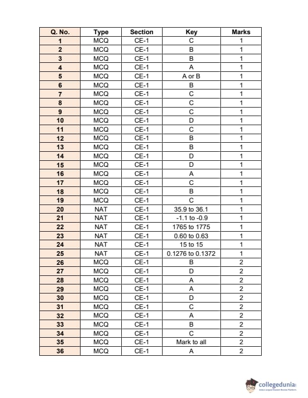 | GATE 2017 CE question Paper | GATE 2017 CE Answer Key |