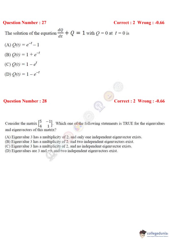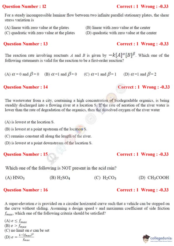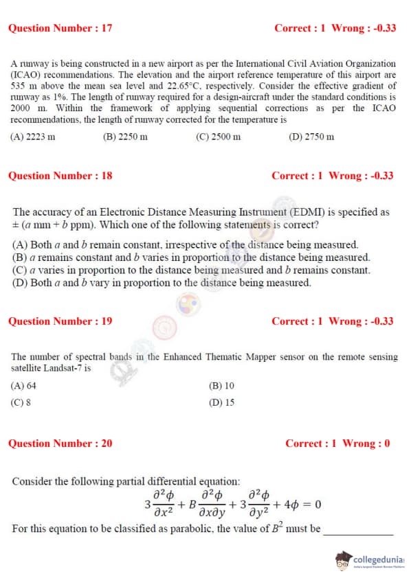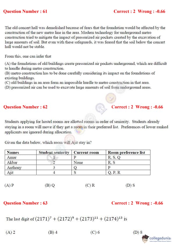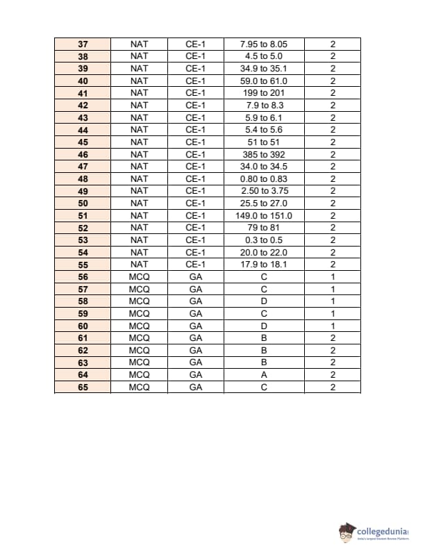 GATE 2017 CE Question Paper and Answer Key PDFs for Slot 1 are available to download. GATE 2017 CE Slot 1 was held on 12th February, 2017 in the Forenoon Session. The exam lasted for 3 hours i.e., 9:00 AM to 12:00 PM. IIT Roorkee took the charge for conducting GATE 2017 CE. The question paper of GATE 2017 CE Slot 1 was a combination of 65 questions, carrying a total of 100 marks. The General Aptitude section carried the highest weightage in the exam.