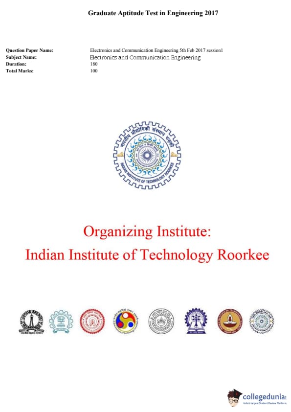 GATE 2017 EC Question Paper and Answer Key PDFs are now available to download. IIT Roorkee conducted the GATE 2017. The examination was conducted in two slots. Slot 1 was held in the forenoon session (9:00 AM to 12:00 PM). There were a total of 65 questions that constituted the question paper of GATE 2017 EC. Each question carried either 1 or 2 marks.