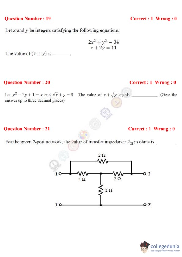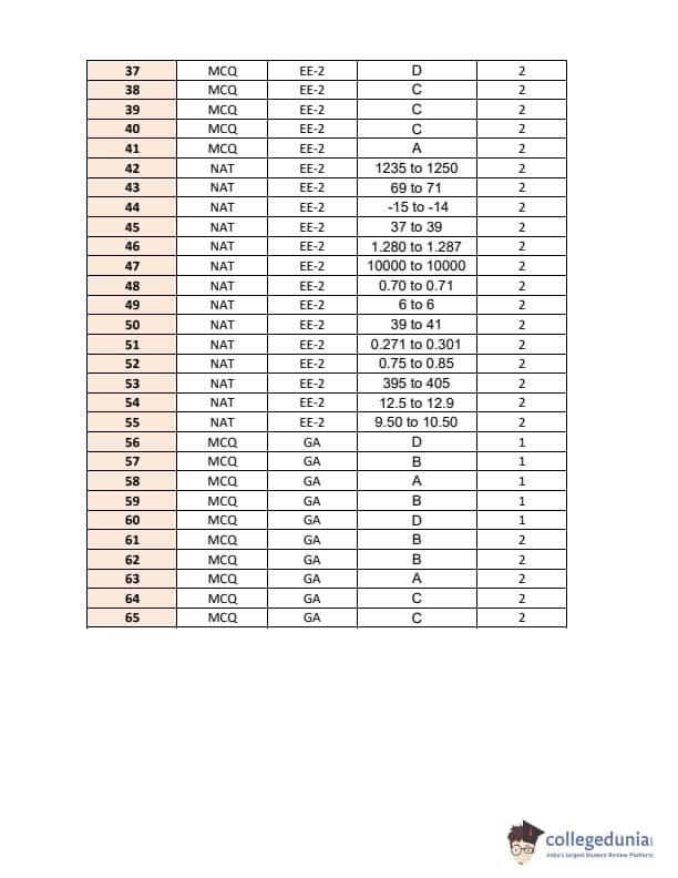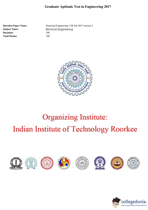 GATE 2017 EE Question Paper and Answer Key PDFs are now live. Students targeting GATE examinations in the upcoming year may download the Question Papers from here. GATE 2017 EE Slot 2 Question Paper was a set of 65 questions, carrying a total 100 marks. IIT Roorkee organized GATE 2017 EE Slot 2 on 11th February, 2017. This was conducted between 2:00 PM to 5:00 PM. The overall difficulty level was rated moderate in terms of difficulty level.