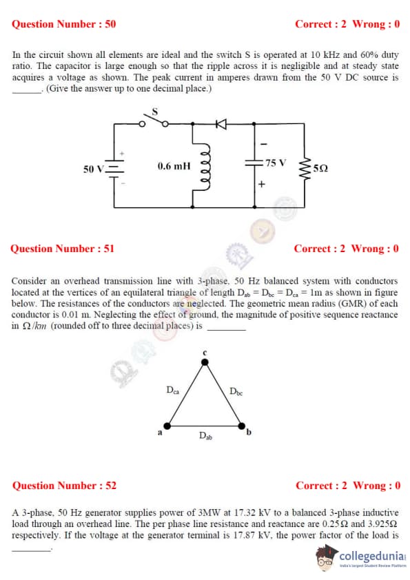 GATE 2017 EE Question Paper with Answer Key PDFs - February 11 (Afternoon Session)